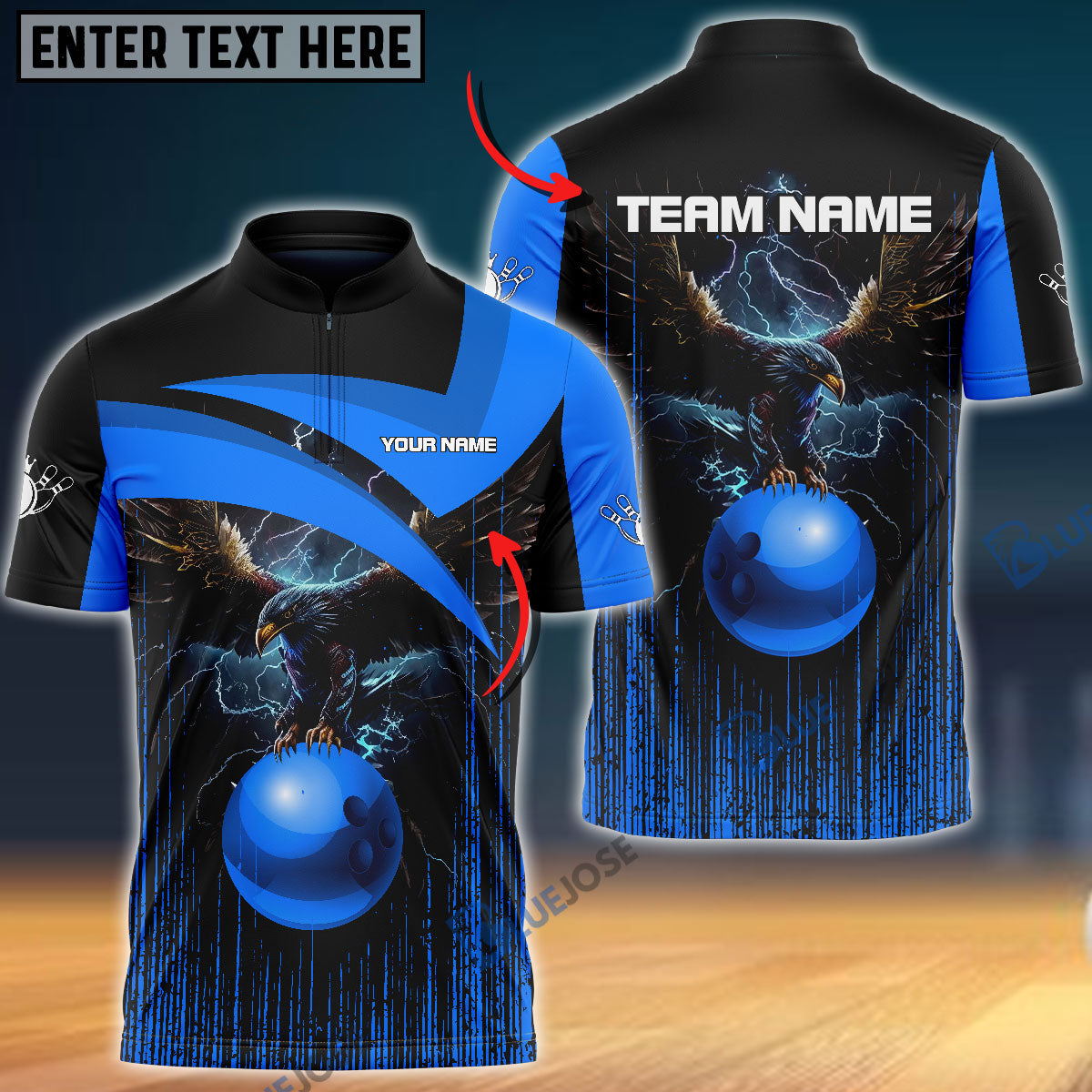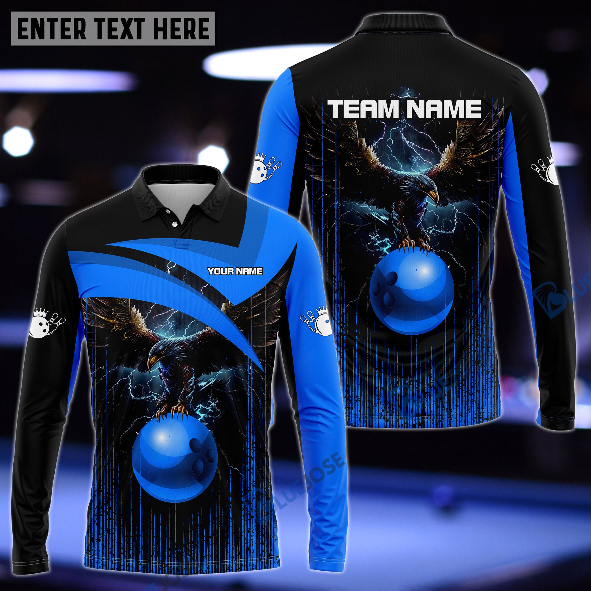 BlueJoses Bowling And Pins Premium Eagle Customized Name 3D Shirt (4 Colors)