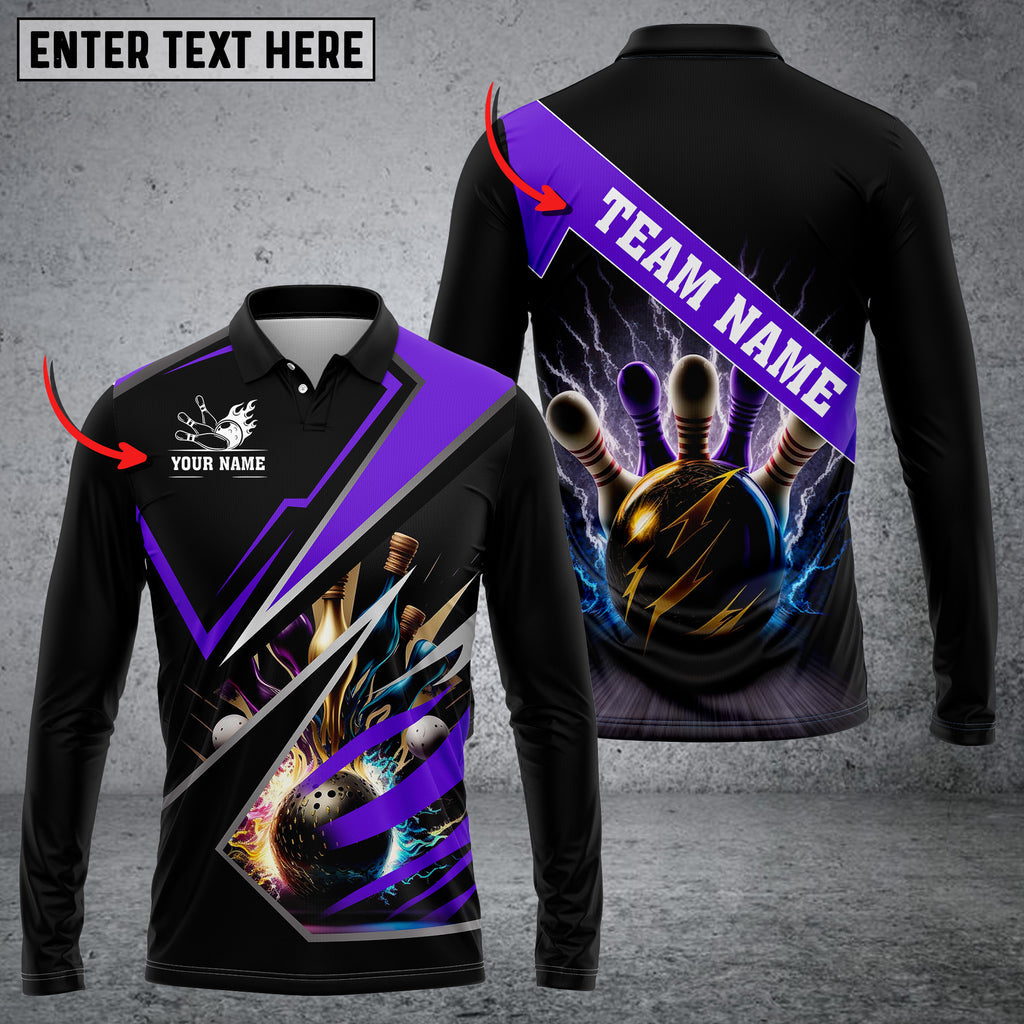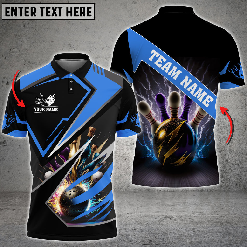 BlueJoses Bowling And Pins Premium Multicolor Customized Name 3D Shirt (4 Colors), Personalized Shirts For Bowling Players