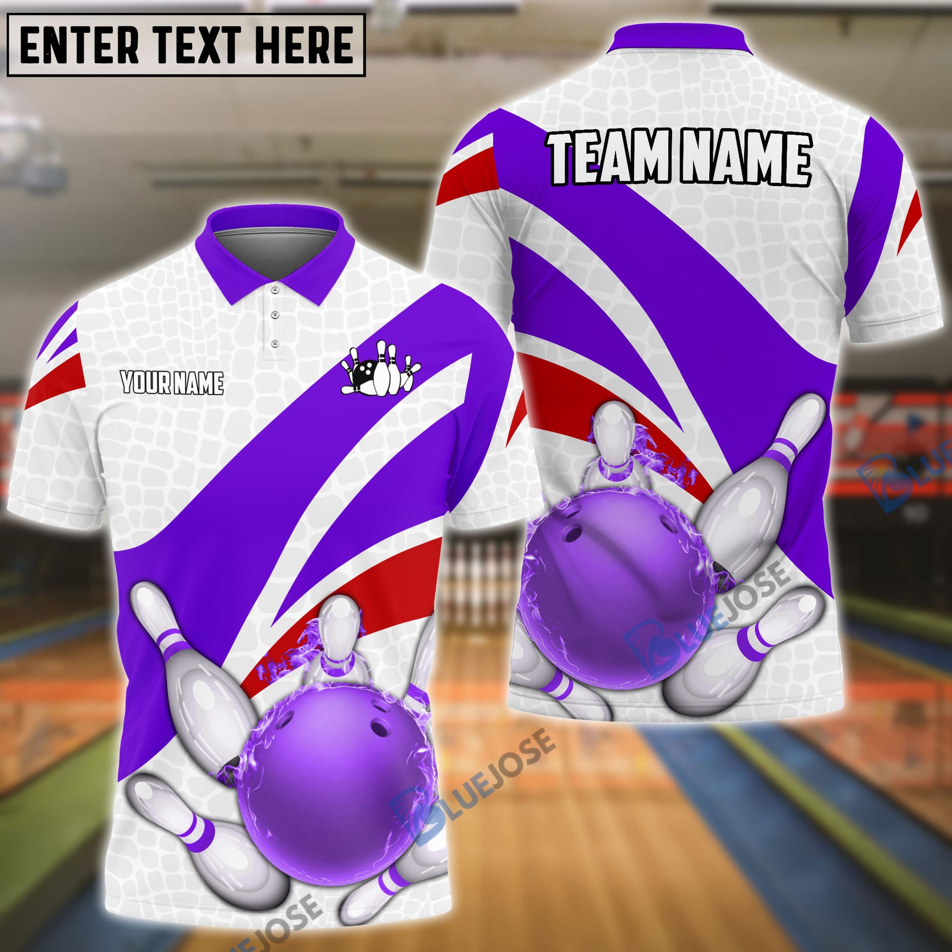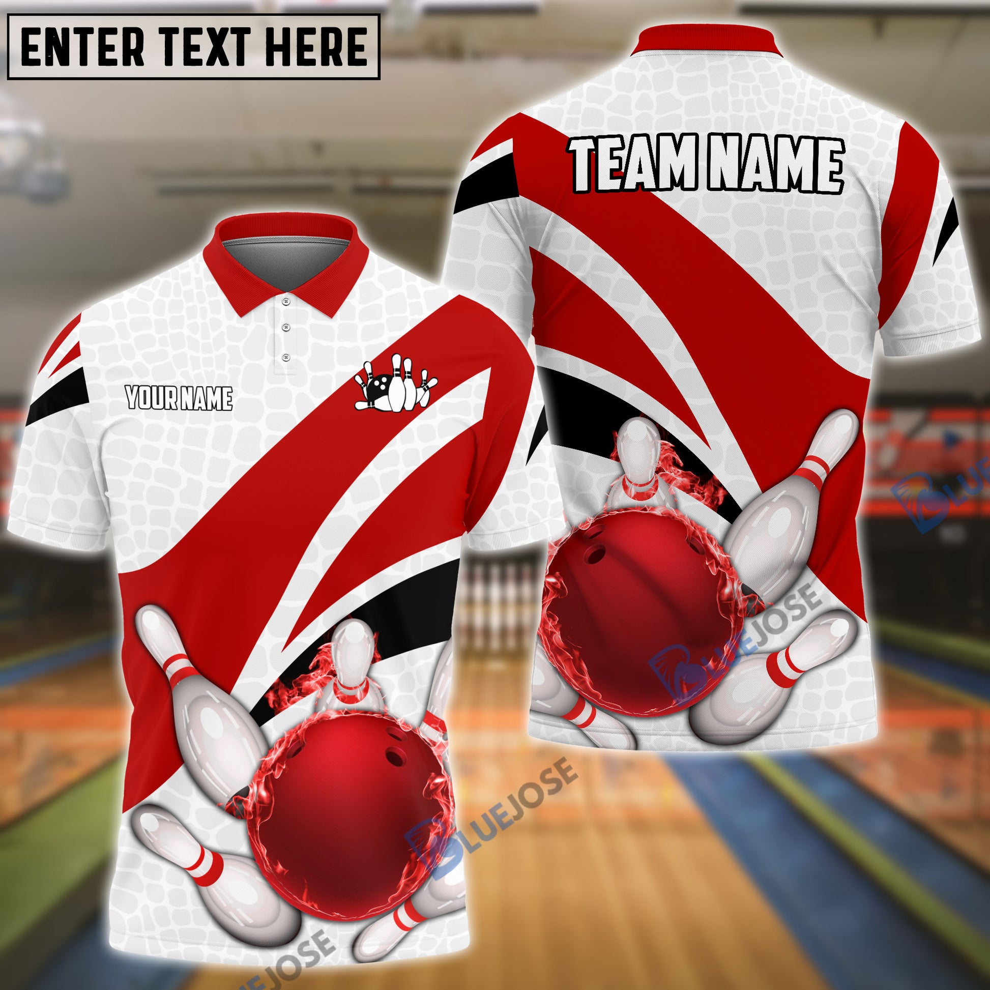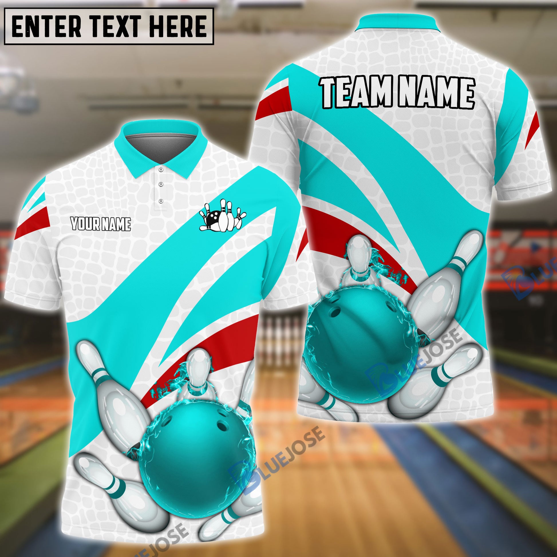 BlueJoses Bowling And Pins Ribbon Pattern Customized Name, Team Name 3D Shirt (4 Colors)