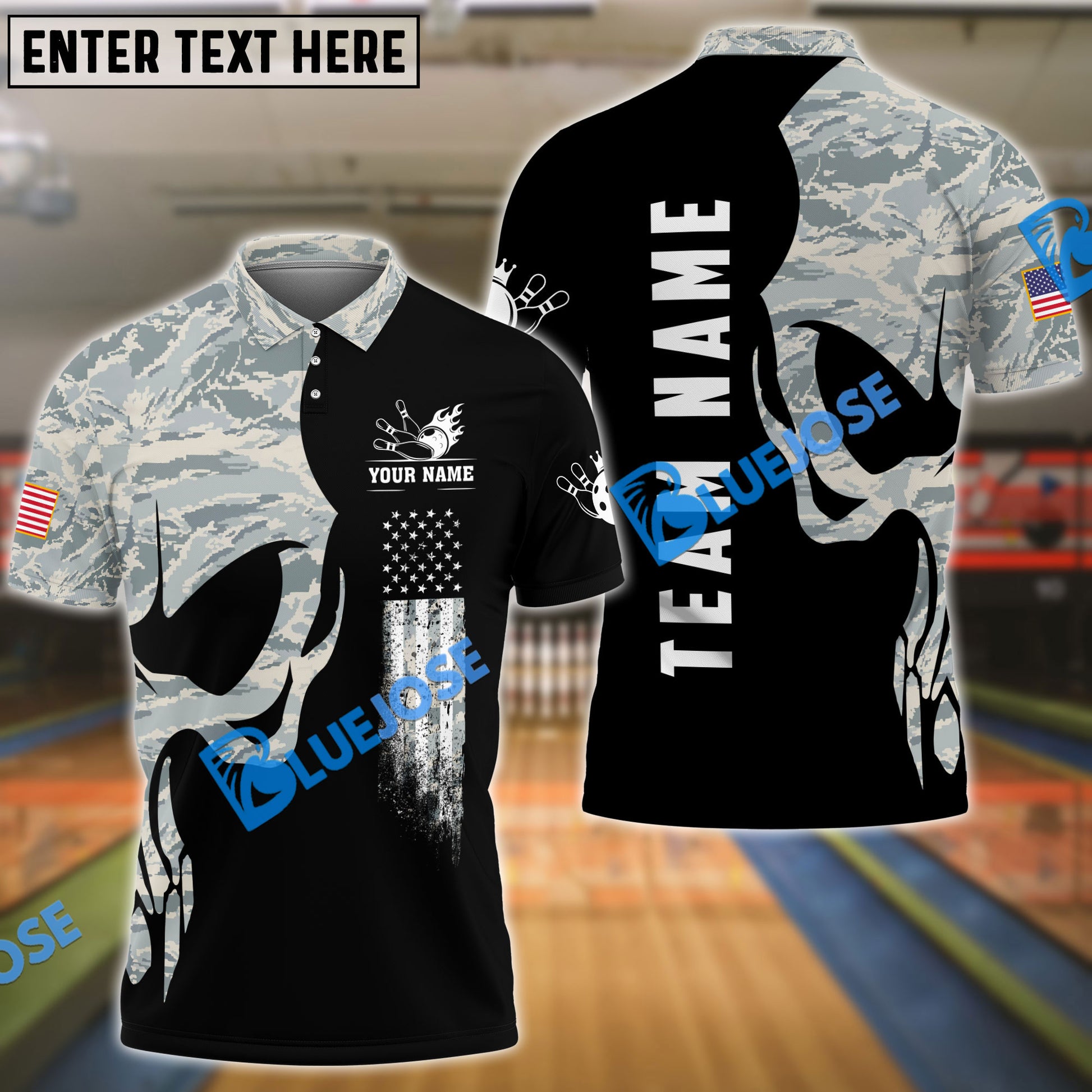 BlueJoses Bowling And Pins Skull Army Flag Custom Multicolor Customized Name 3D Shirt ( 4 Colors )