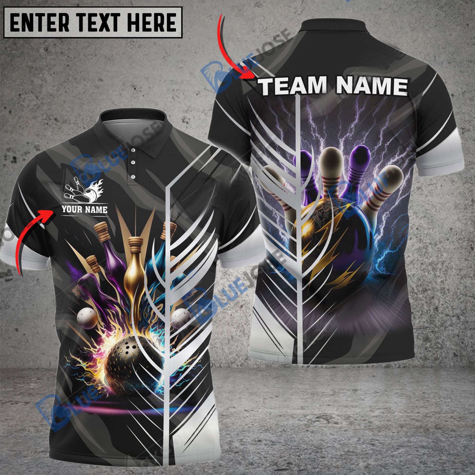 BlueJoses Bowling And Pins Thunder Customized Name 3D Shirt (6 Colors)