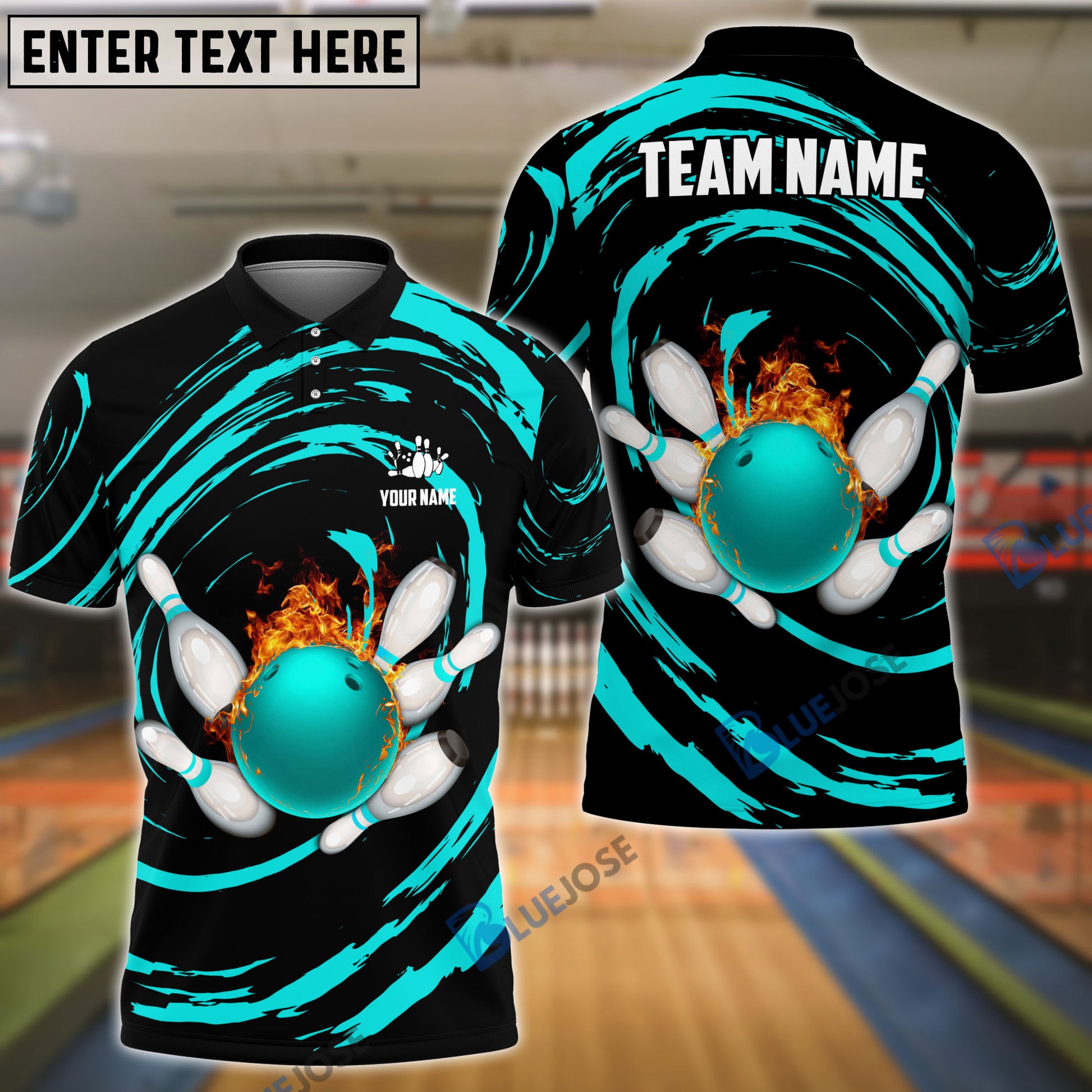 BlueJoses Bowling And Pins Wave Sea Pattern Customized Name, Team Name 3D Shirt (4 Colors)