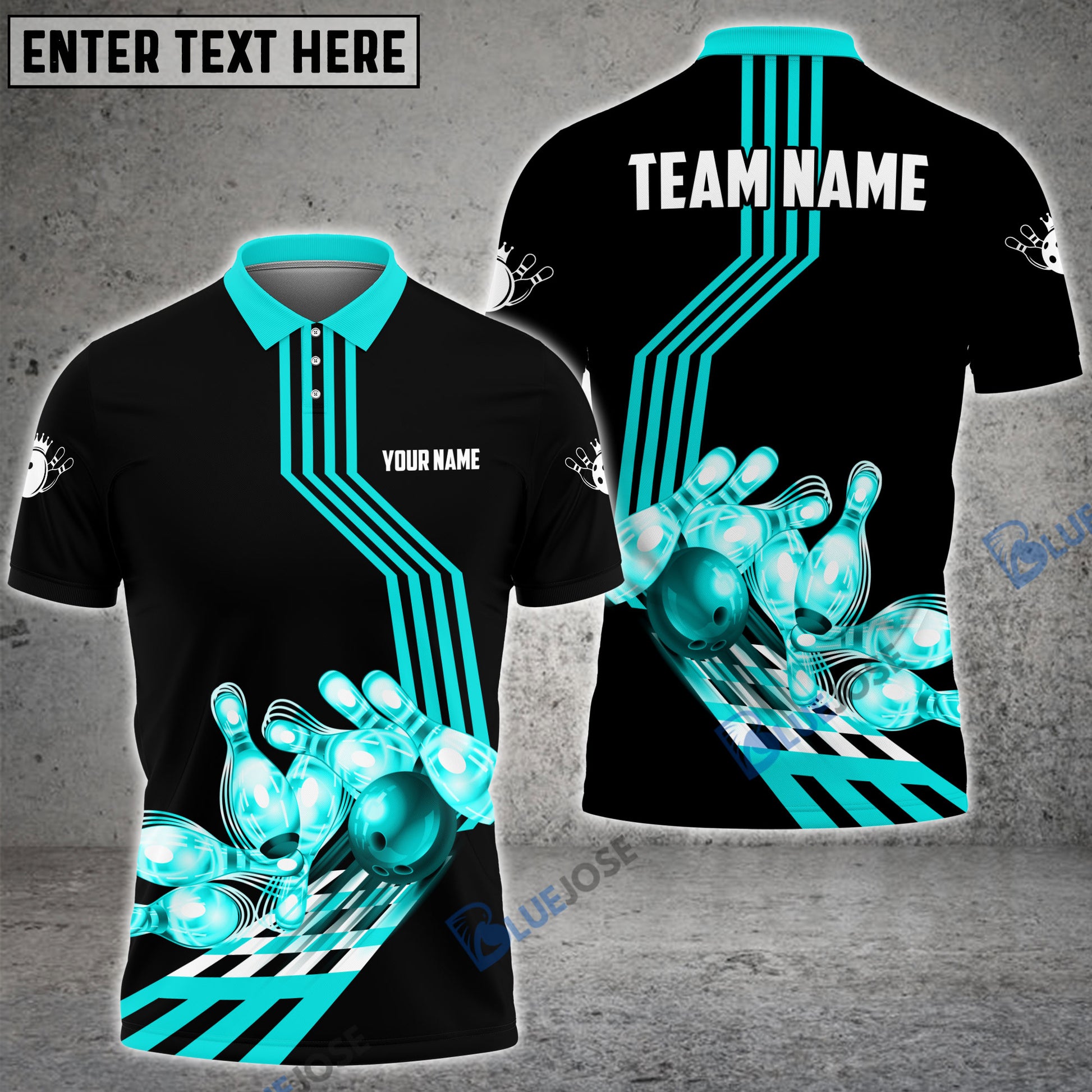 BlueJoses Bowling Ball and Pins Break Personalized Name, Team Name 3D Shirt