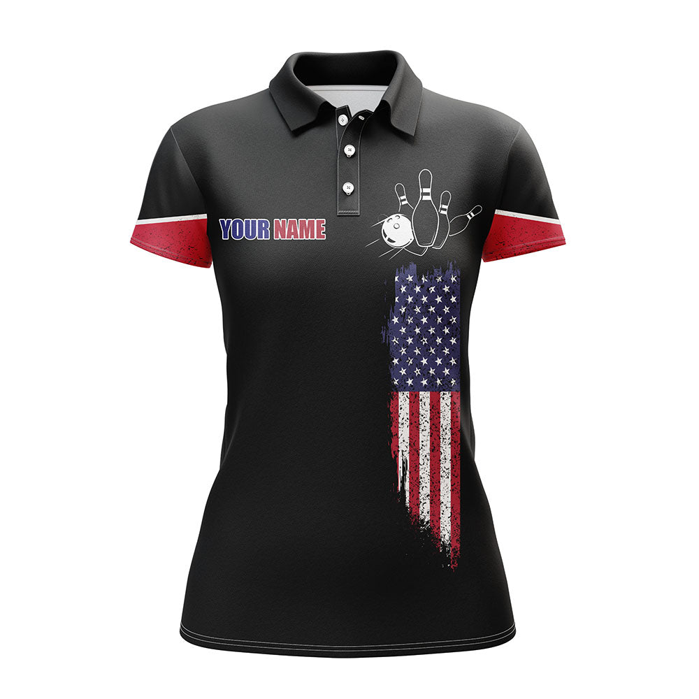 BlueJoses Bowling Black American Flag Customized Name All Over Printed Shirt For Women
