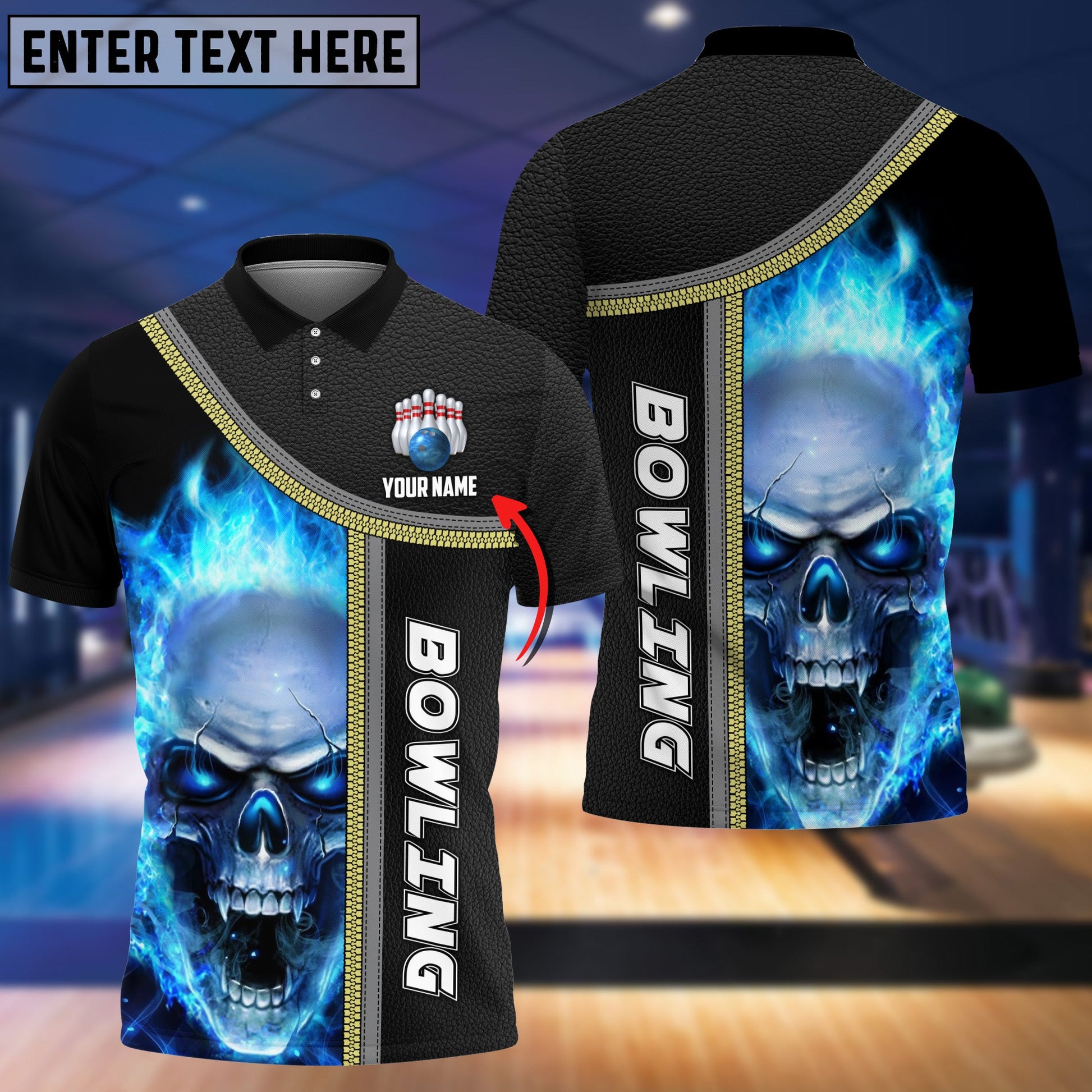 BlueJoses Bowling Cyan Flame Skull Pattern Customized Name 3D Shirt