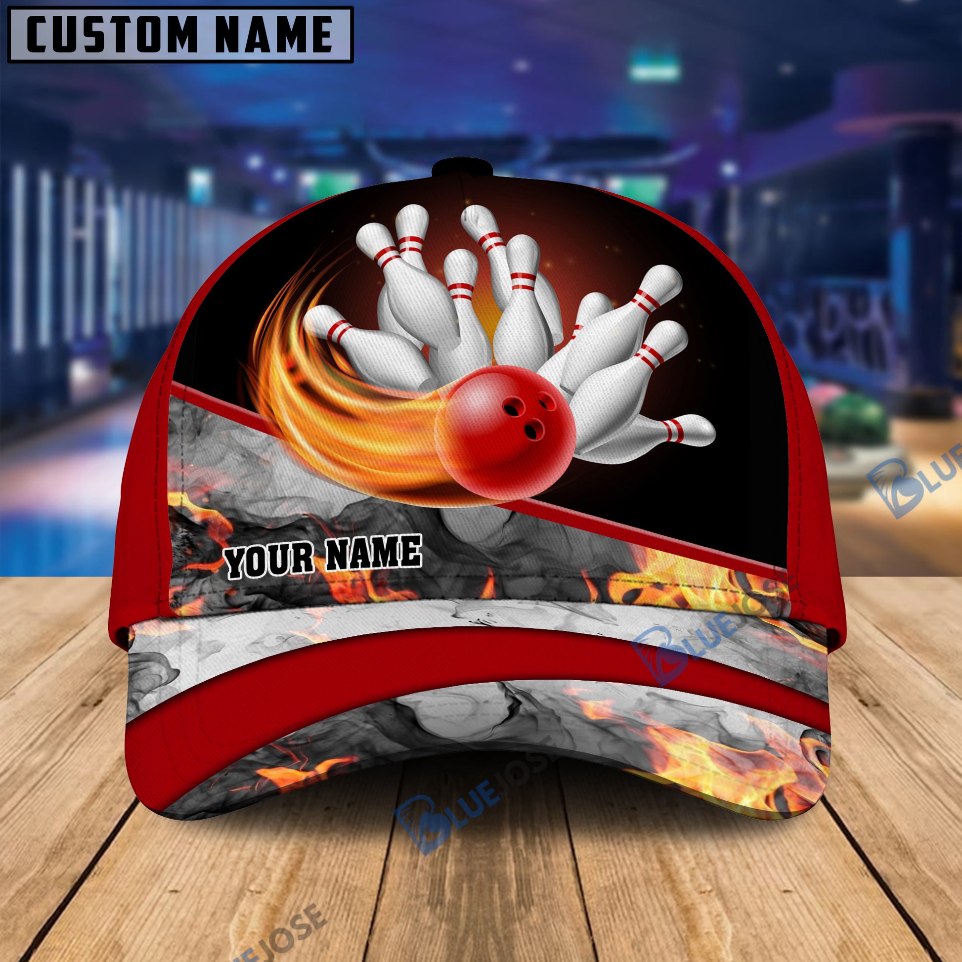 BlueJoses Bowling Flame Grey Smoke Pattern Premium Personalized Name Cap