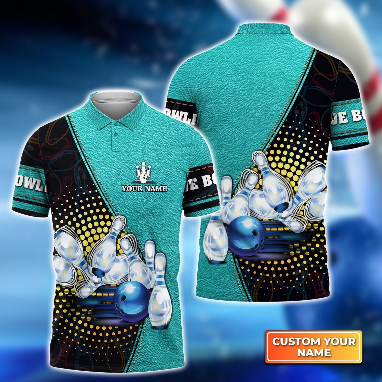 BlueJoses Bowling Game Sign Icon with Pin Skittle Customized Name All Over Printed Shirt