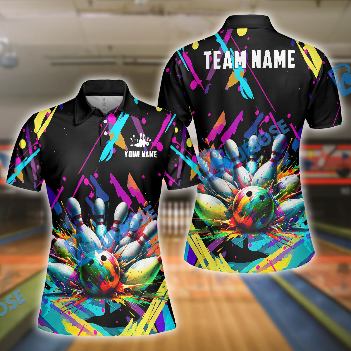 BlueJoses Bowling Graffiti Splash Paint Customized Name, Team Name 3D Shirt