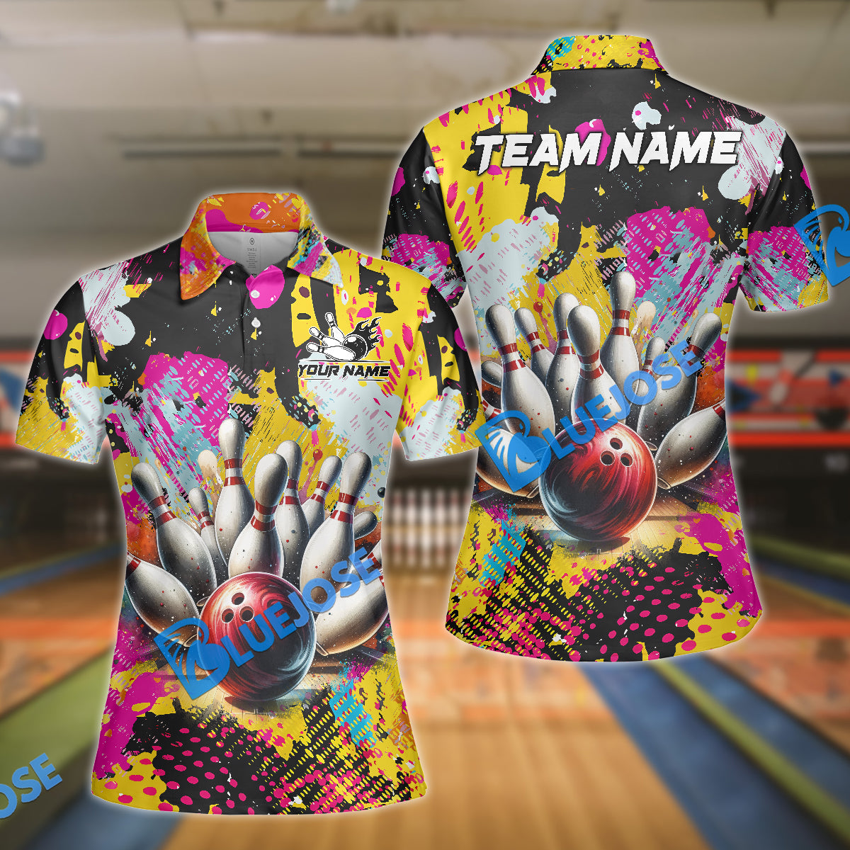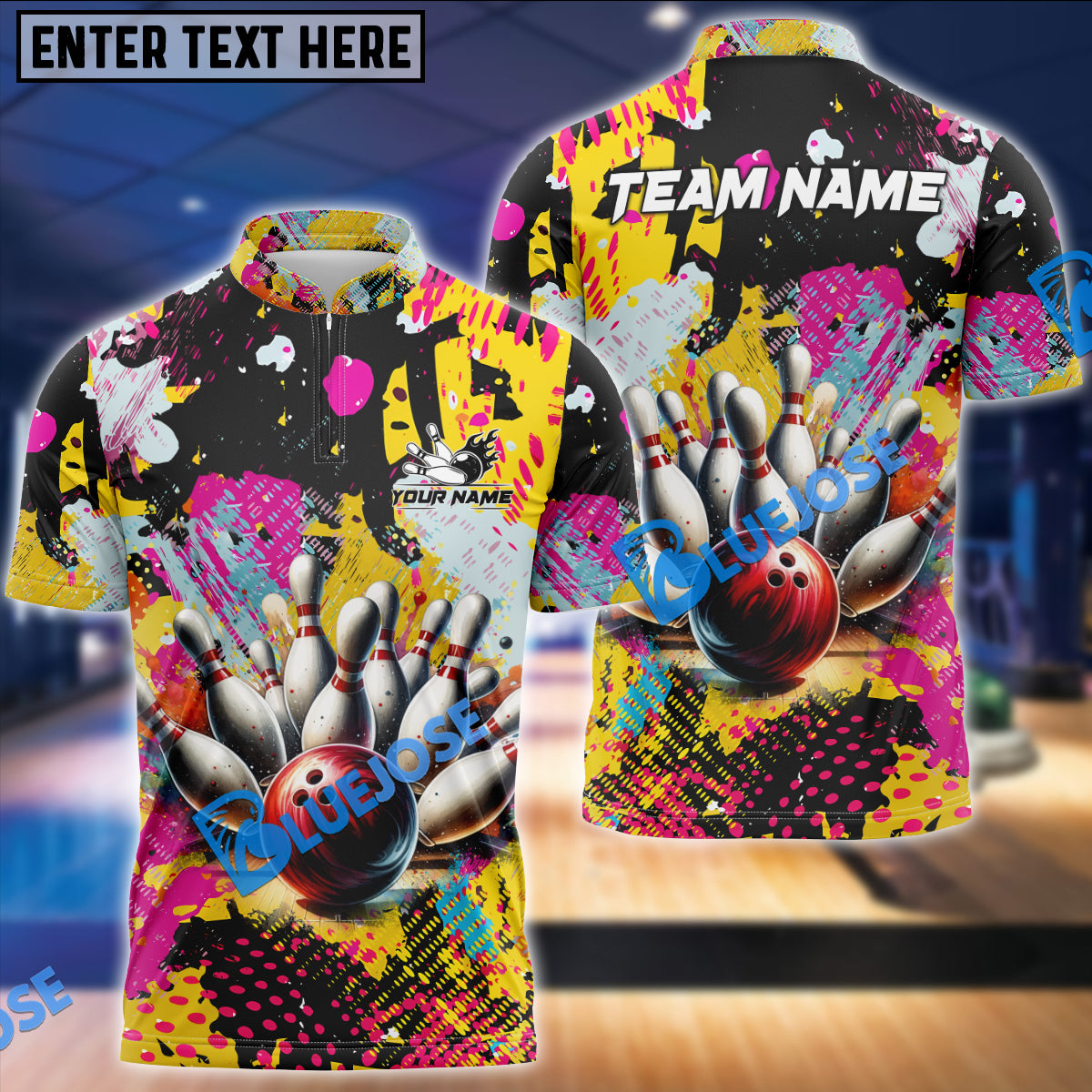 BlueJoses Bowling Graffiti Yellow Customized Name, Team Name 3D Shirt
