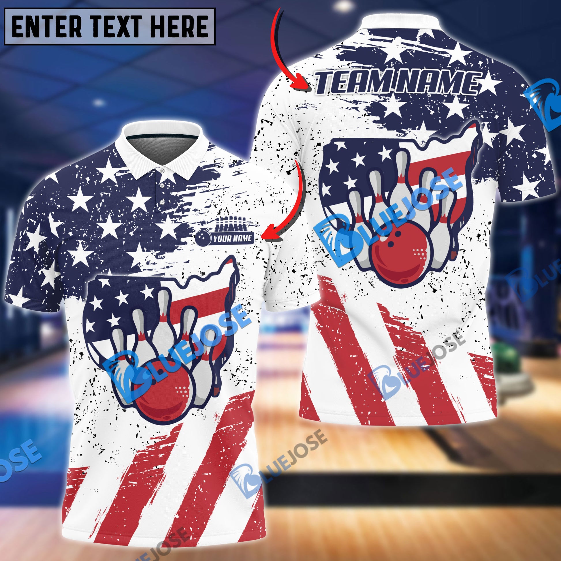 BlueJoses Bowling US Flag Map Customized Name, Team Name 3D Shirt