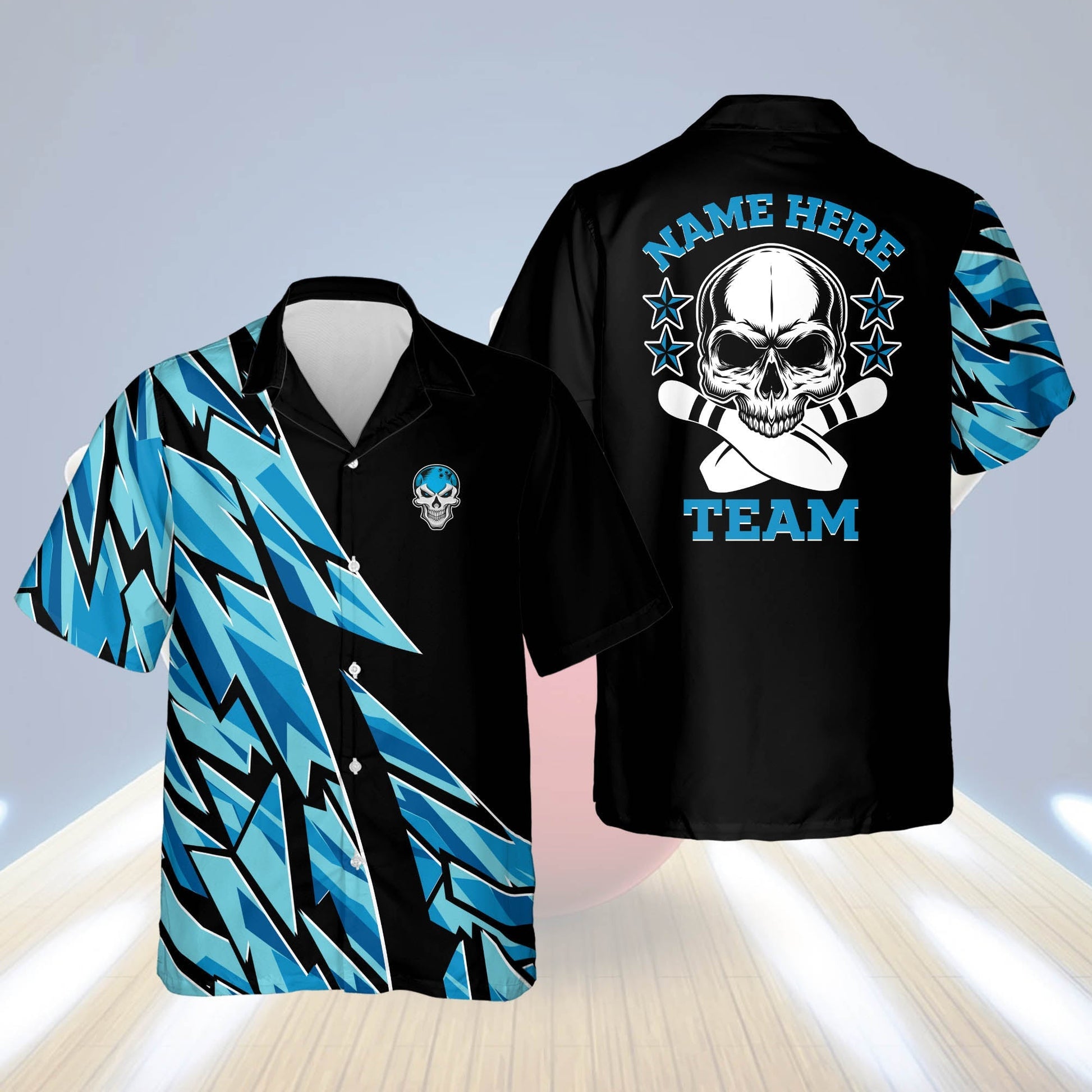 BlueJoses Custom Blue Skull Personalized Name Hawaiian Shirt