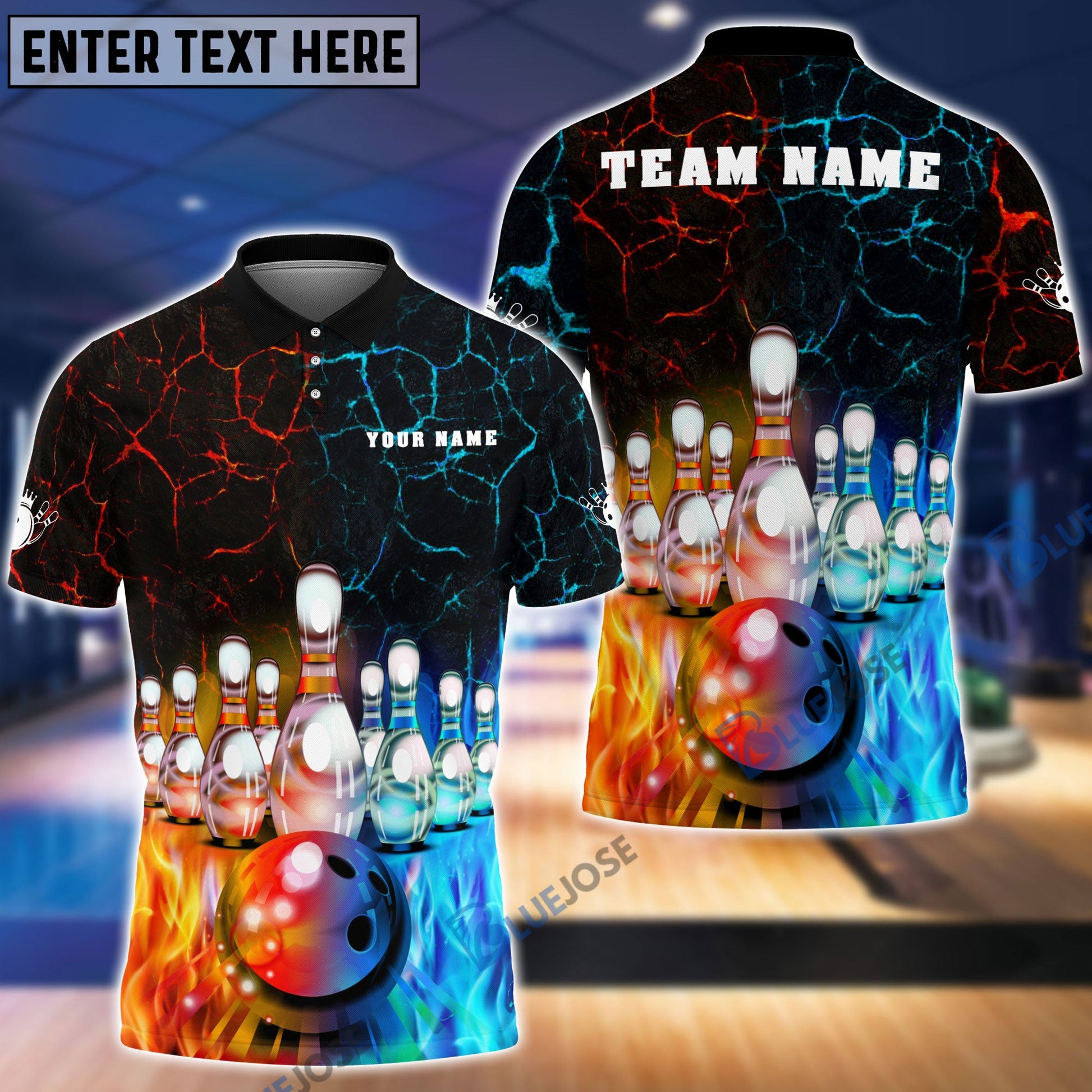 BlueJoses Fire and Water Bowling And Pins Personalized Name Team Name 3D Shirt, Personalized Shirts For Bowling Players