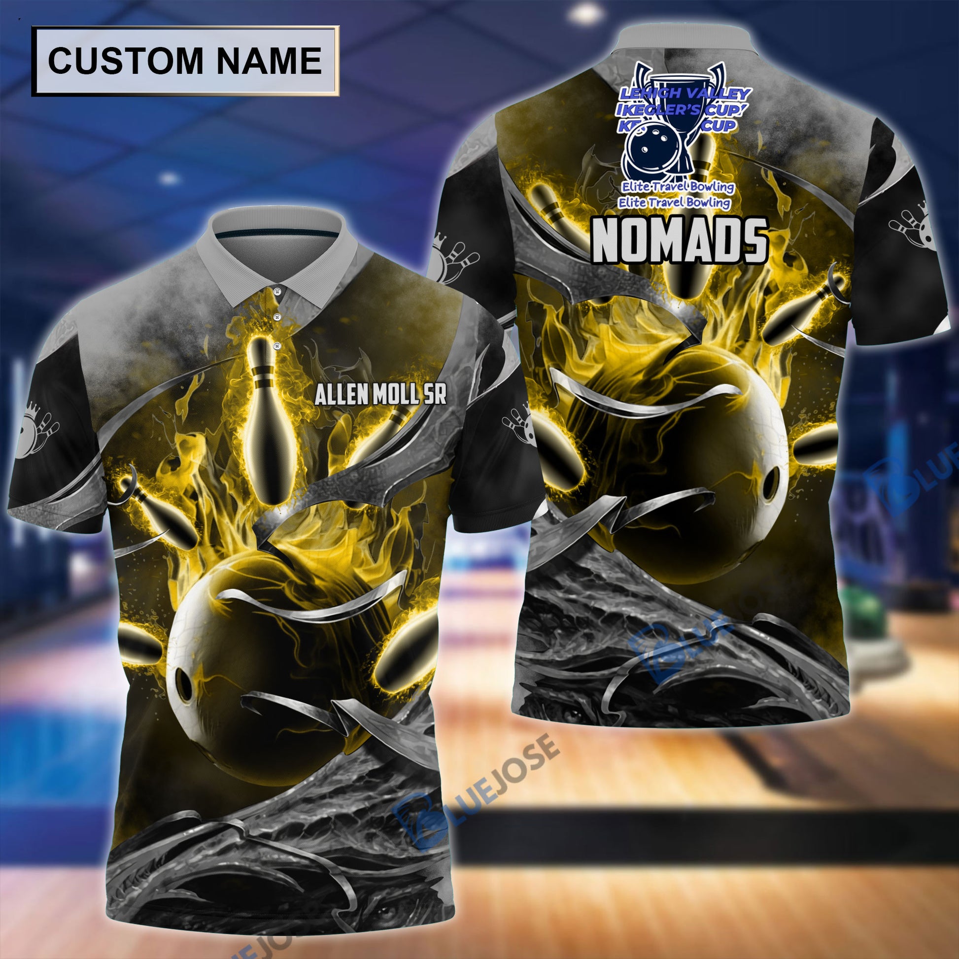 BlueJoses Fire Gray Bowling and Pins Personalized Name Team Name 3D Shirt for Allen Moll
