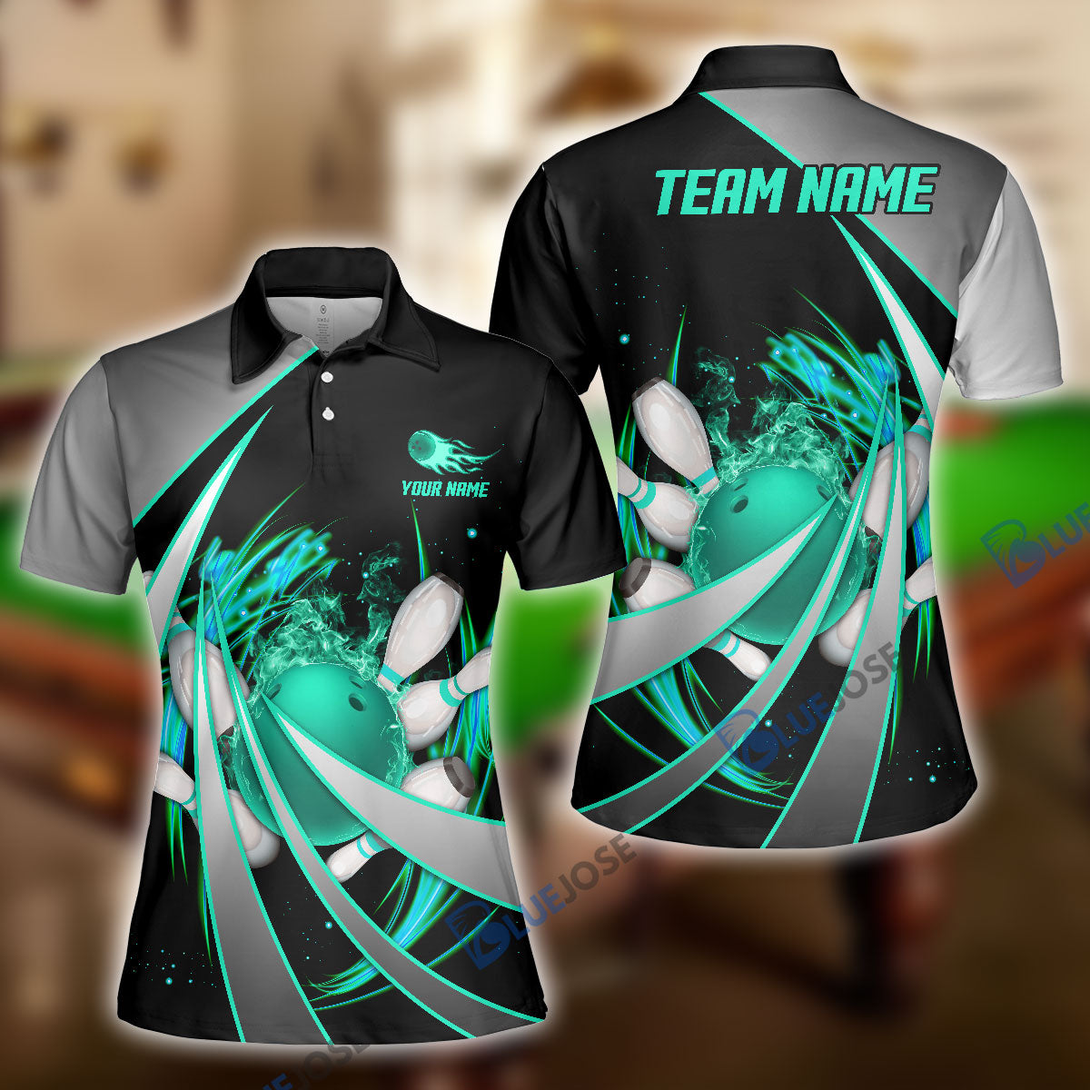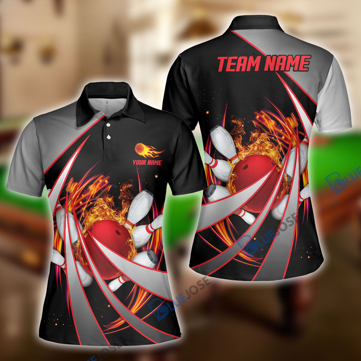 BlueJoses Flame Bowling And Pins Tornado Pattern Multicolor Customized Name 3D Shirt for Women