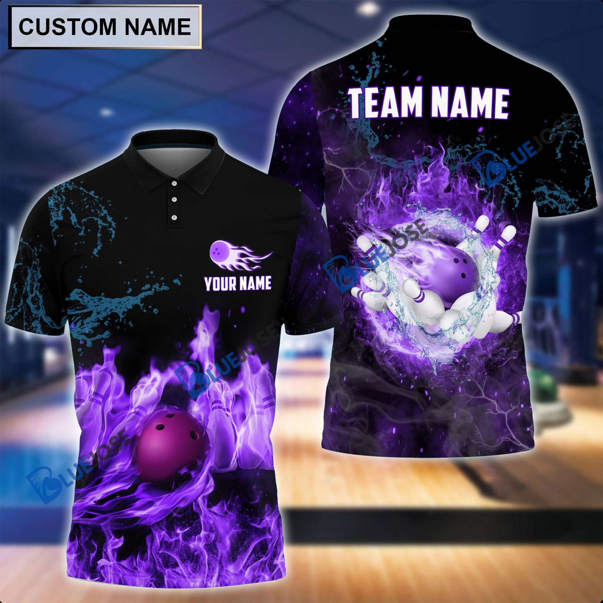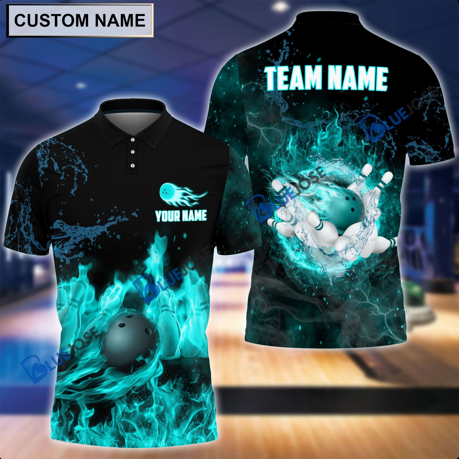 BlueJoses Personalized Name and Team Name Fire Light Bowling Player Multicolor 3D Shirt, Personalized Shirts For Bowling Players