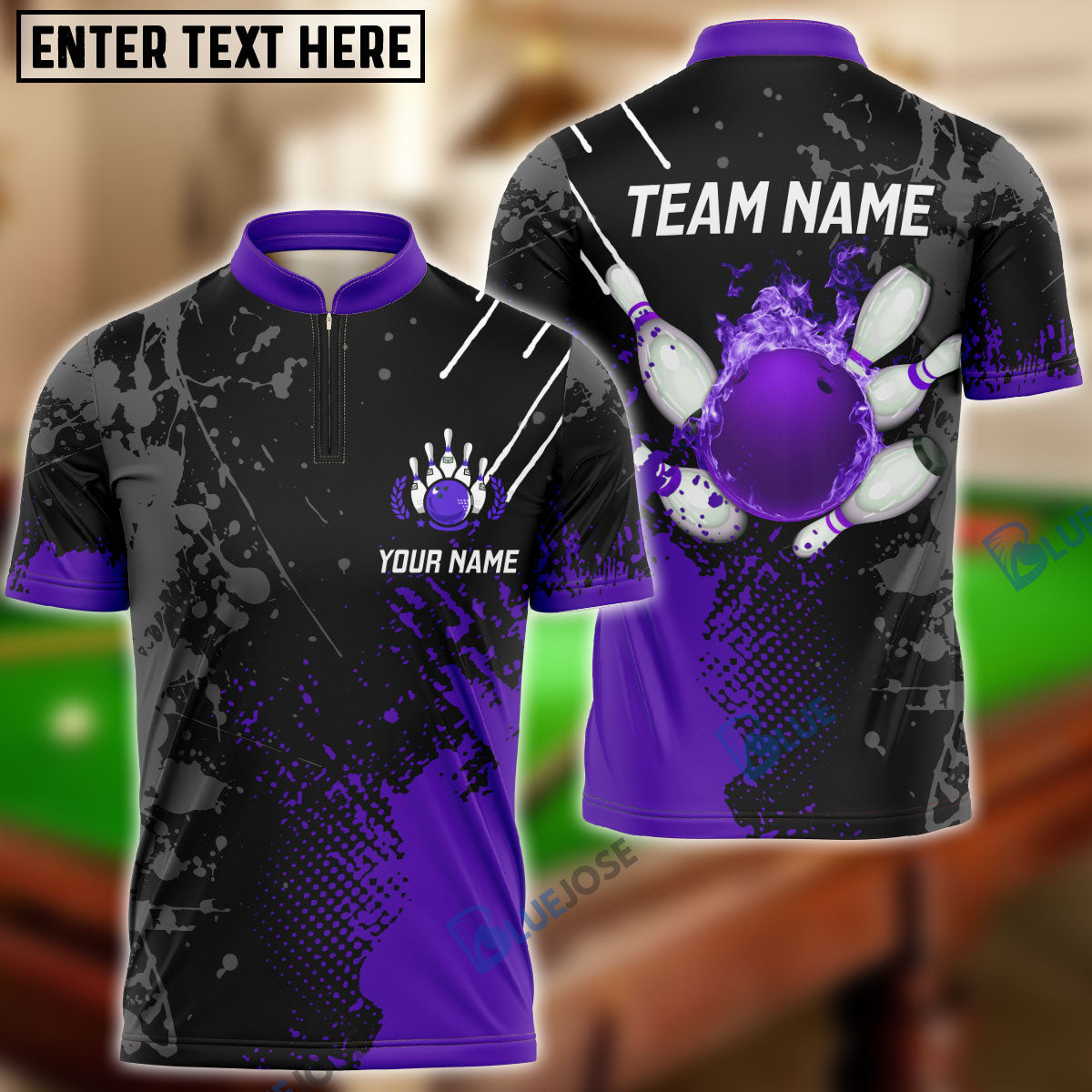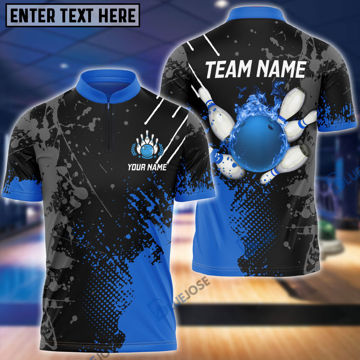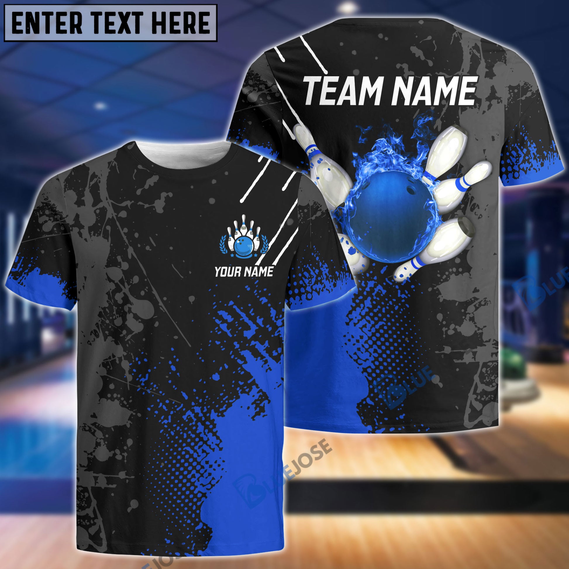 BlueJoses Personalized Name Paint Fire Bowling And Pins Multicolor 3D Shirt