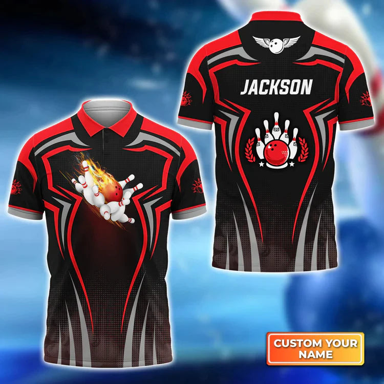 BlueJoses The Red Bowling Ball Crashing The Pins Personalized Name 3D Shirt