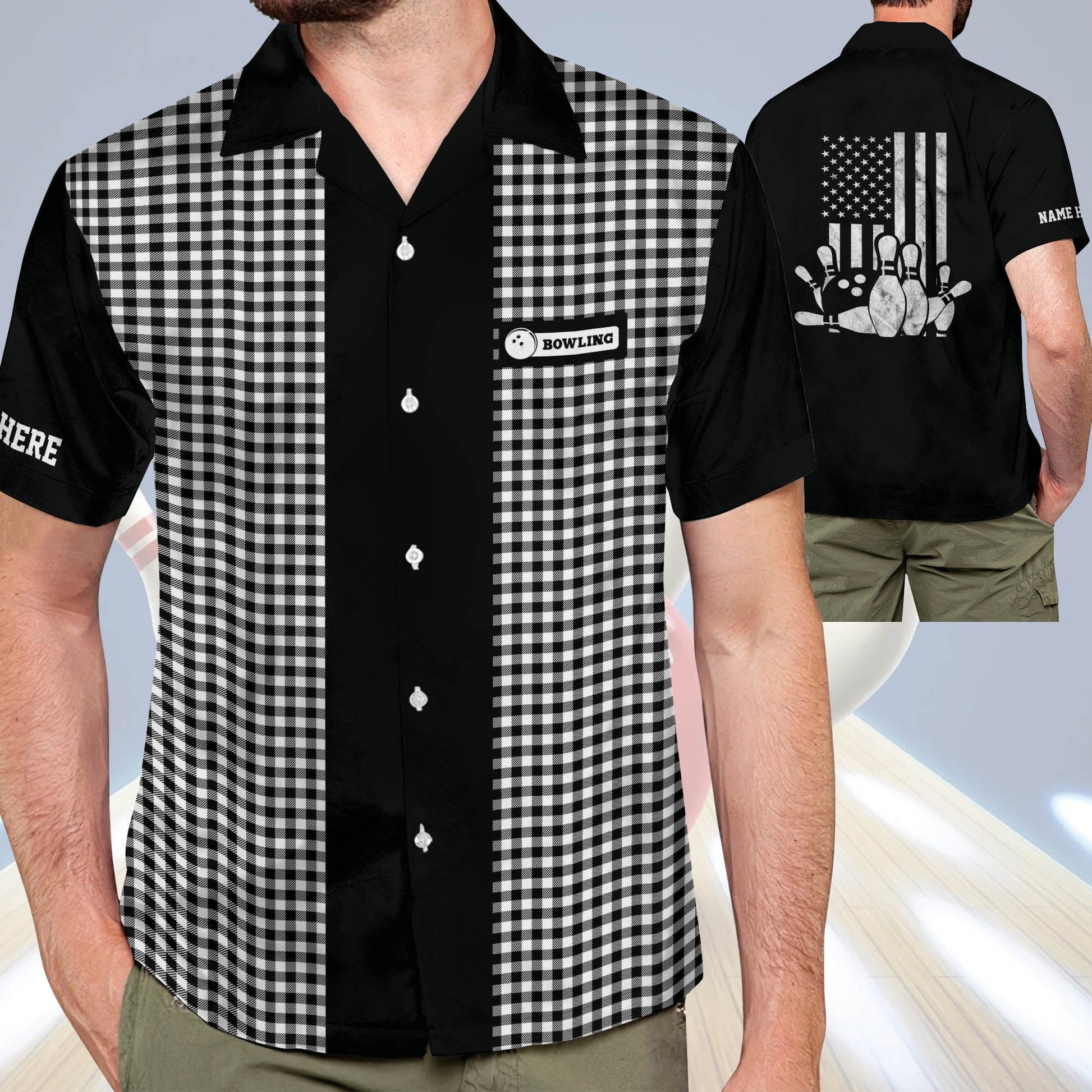 BlueJoses USA Flag Patriotic Bowling Personalized Name Hawaiian Shirt