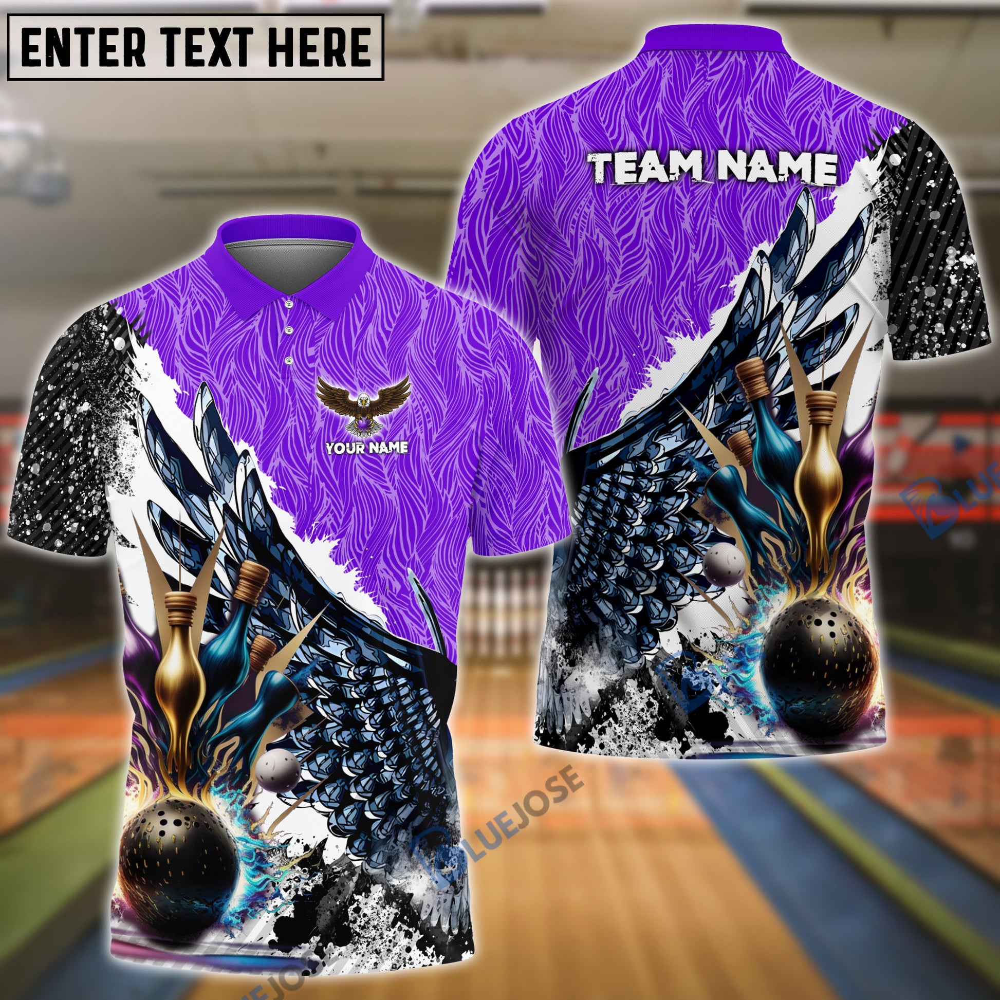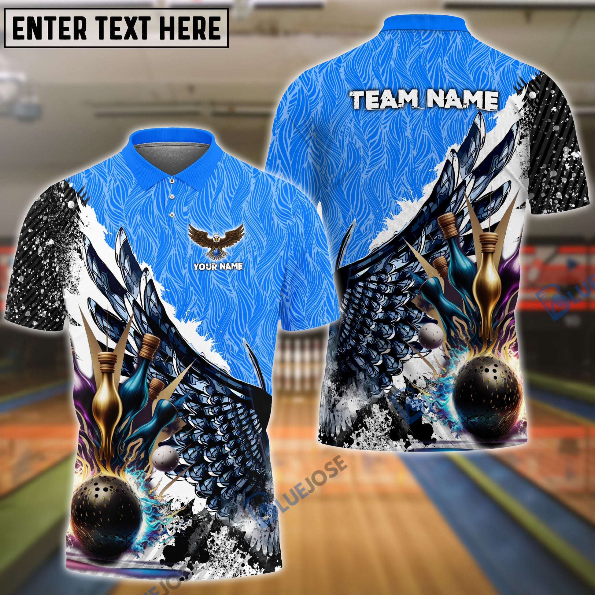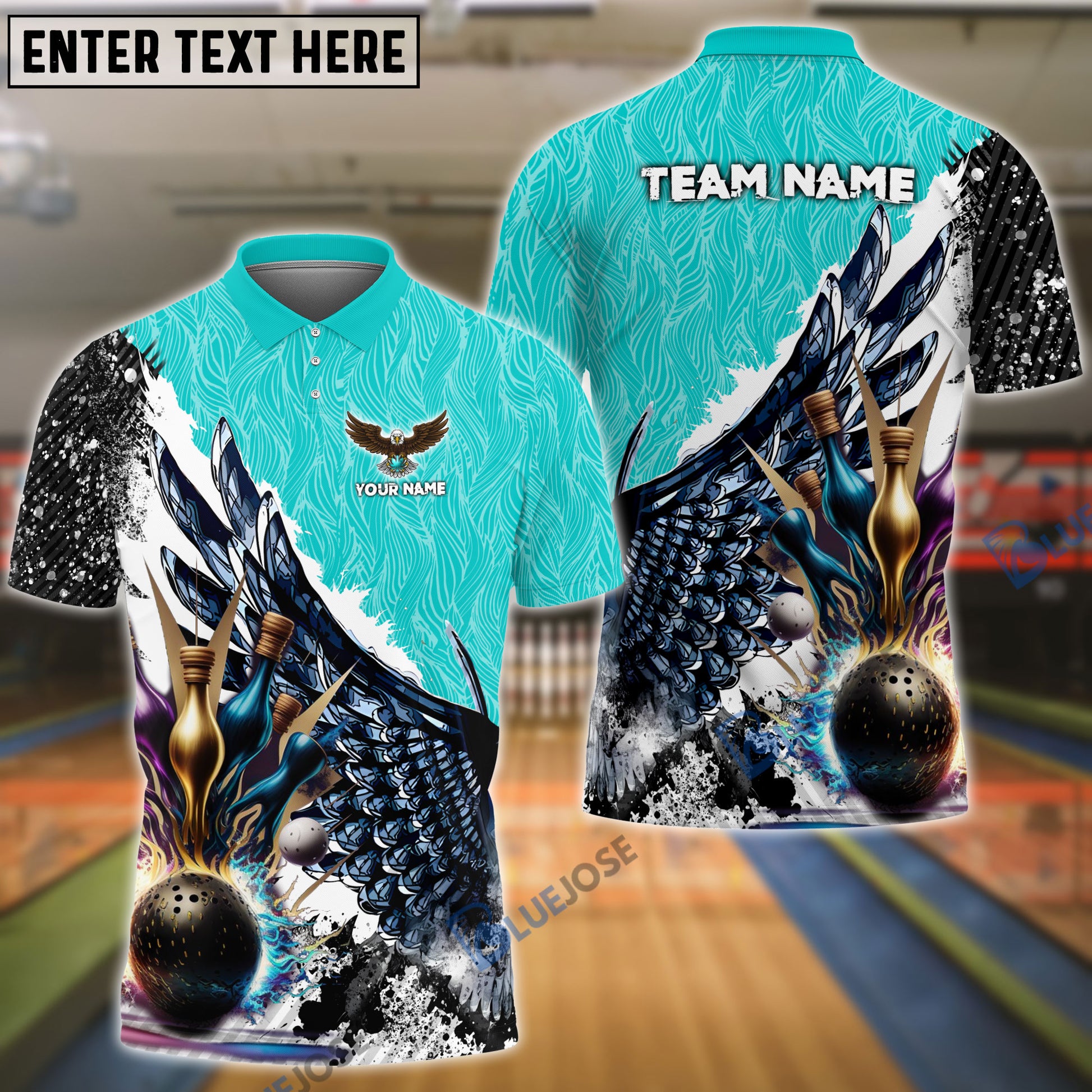 BlueJoses Wing Bowling And Pins Pattern Customized Name, Team Name 3D Shirt (4 Colors)