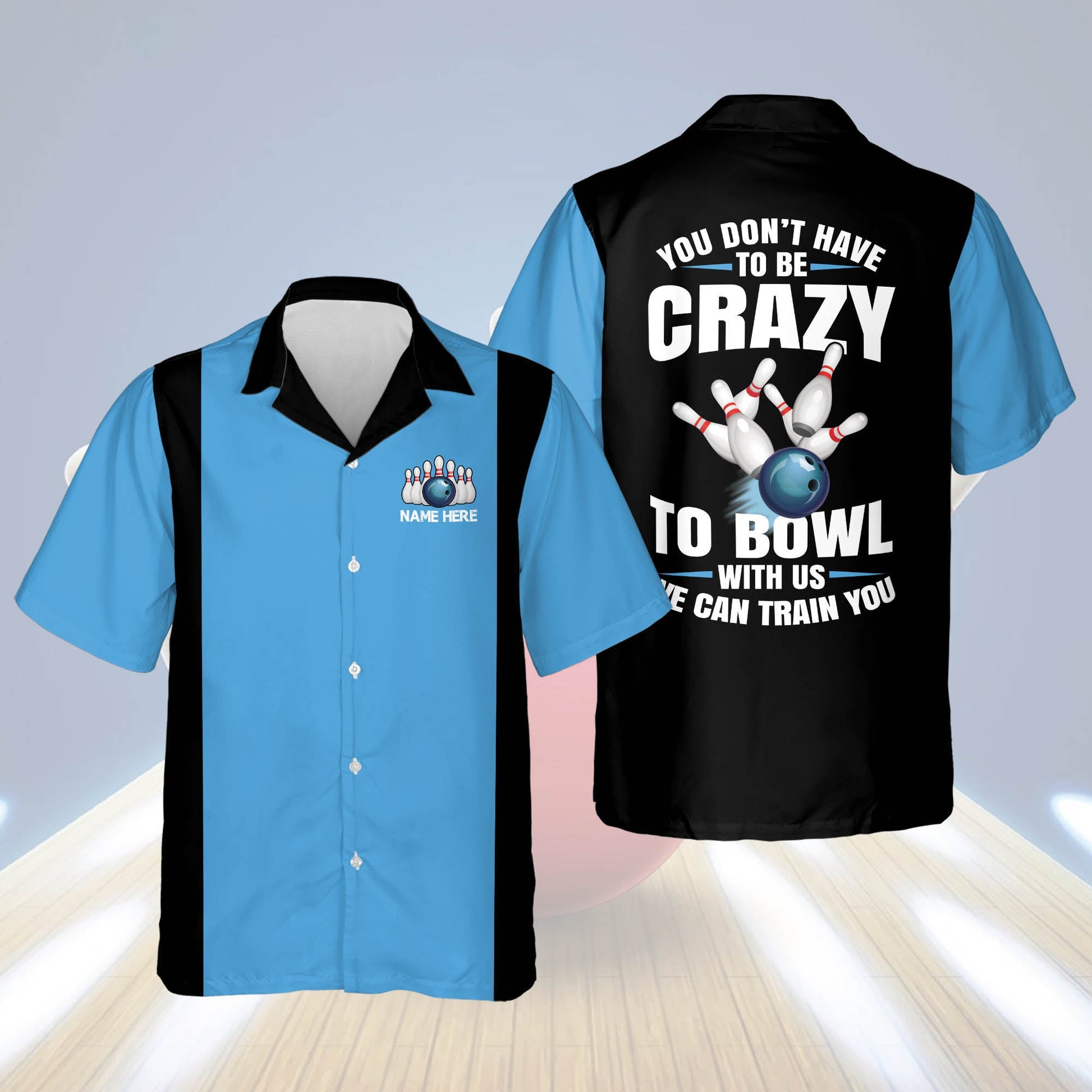 BlueJoses You Don't Have To Be Crazy To Bowl With Us We Can Train You Personalized Name Hawaiian Shirt