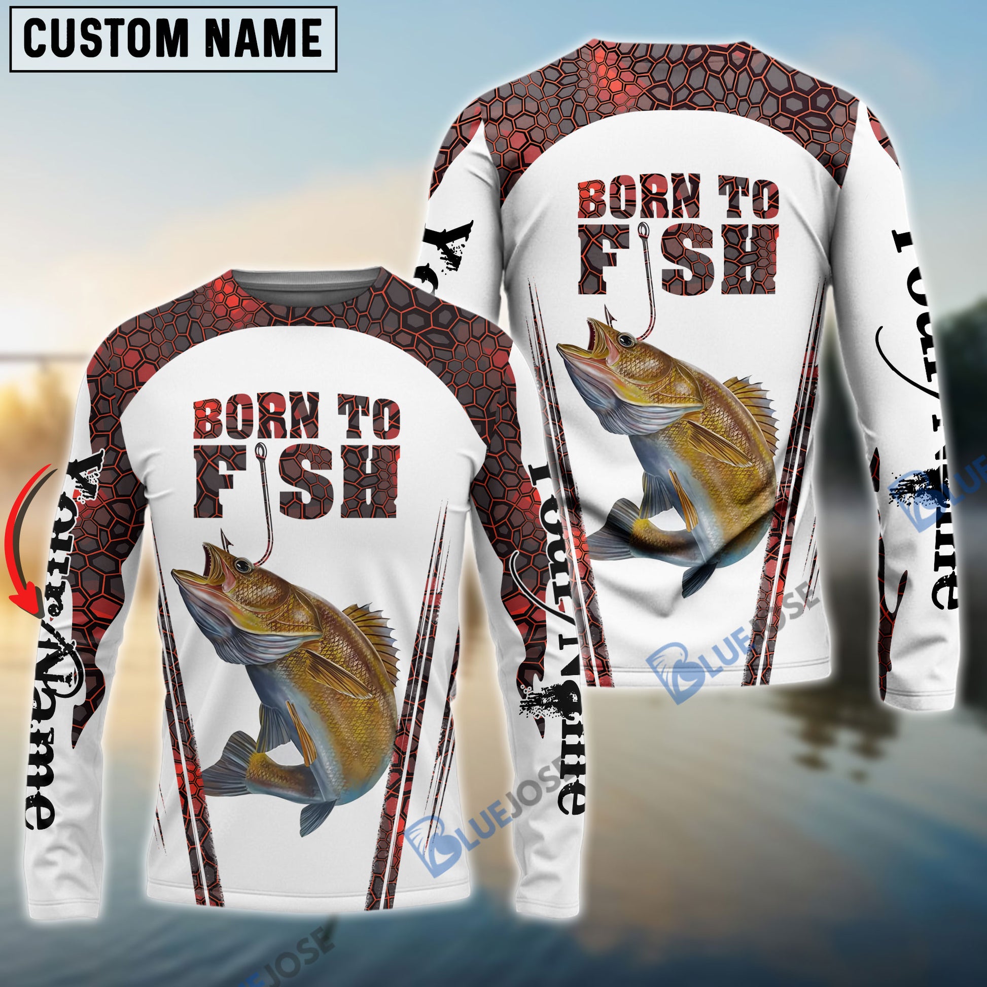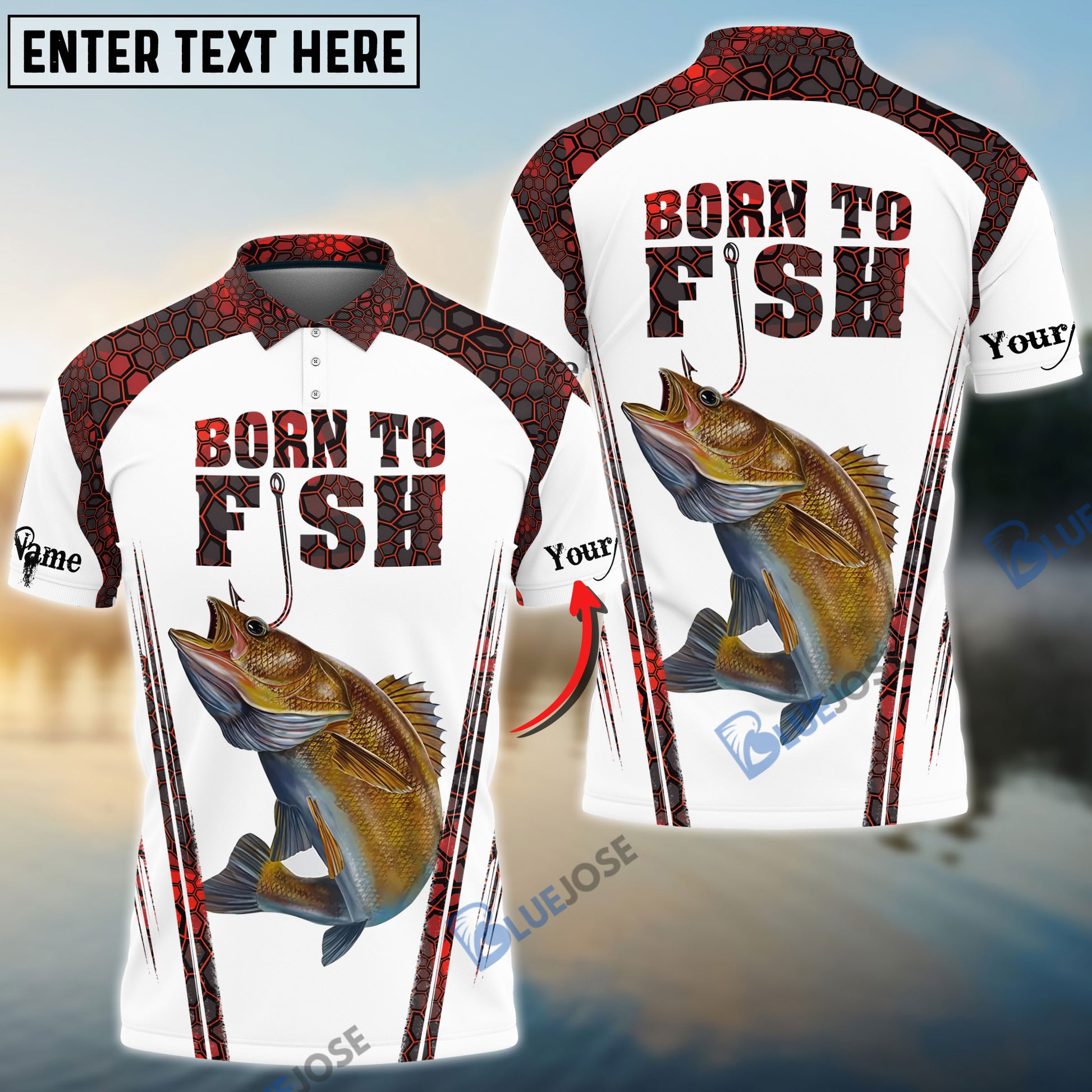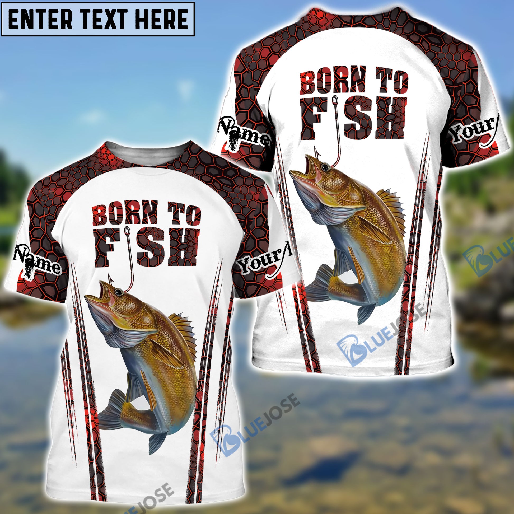 BlueJose "Born To Fish" Walleye Fishing Red Camo Custom Name Shirt