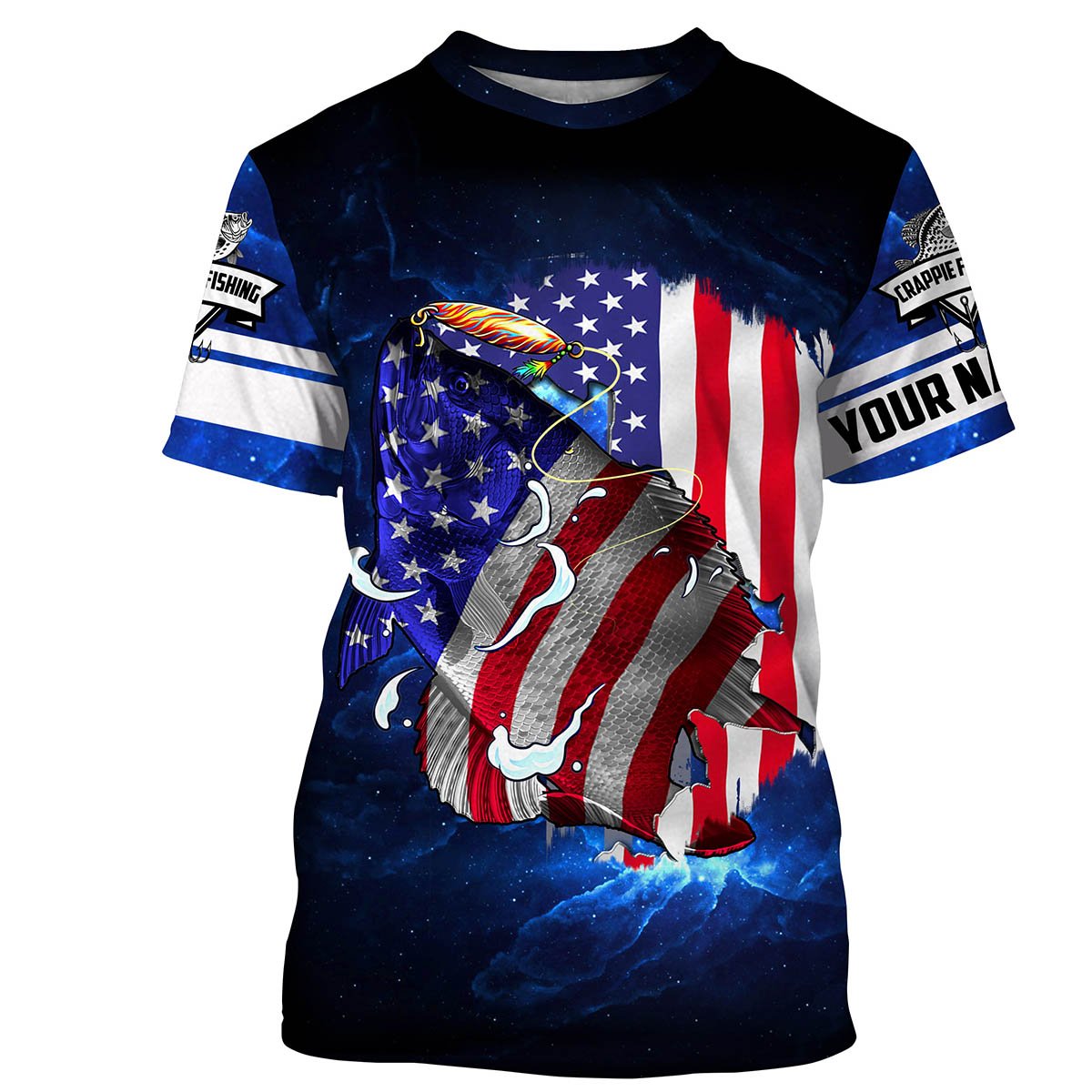 Bluejose Crappie Fishing 3D American Flag Patriotic Customize Name All Over Print Shirts - Personalized Fishing Gift