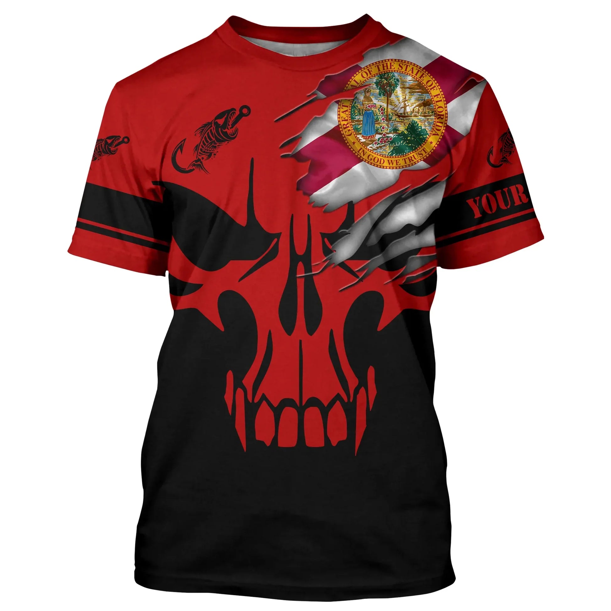 BlueJose Custom Florida Flag Fishing Fish Reaper Skull Red And Black Fishing Shirt
