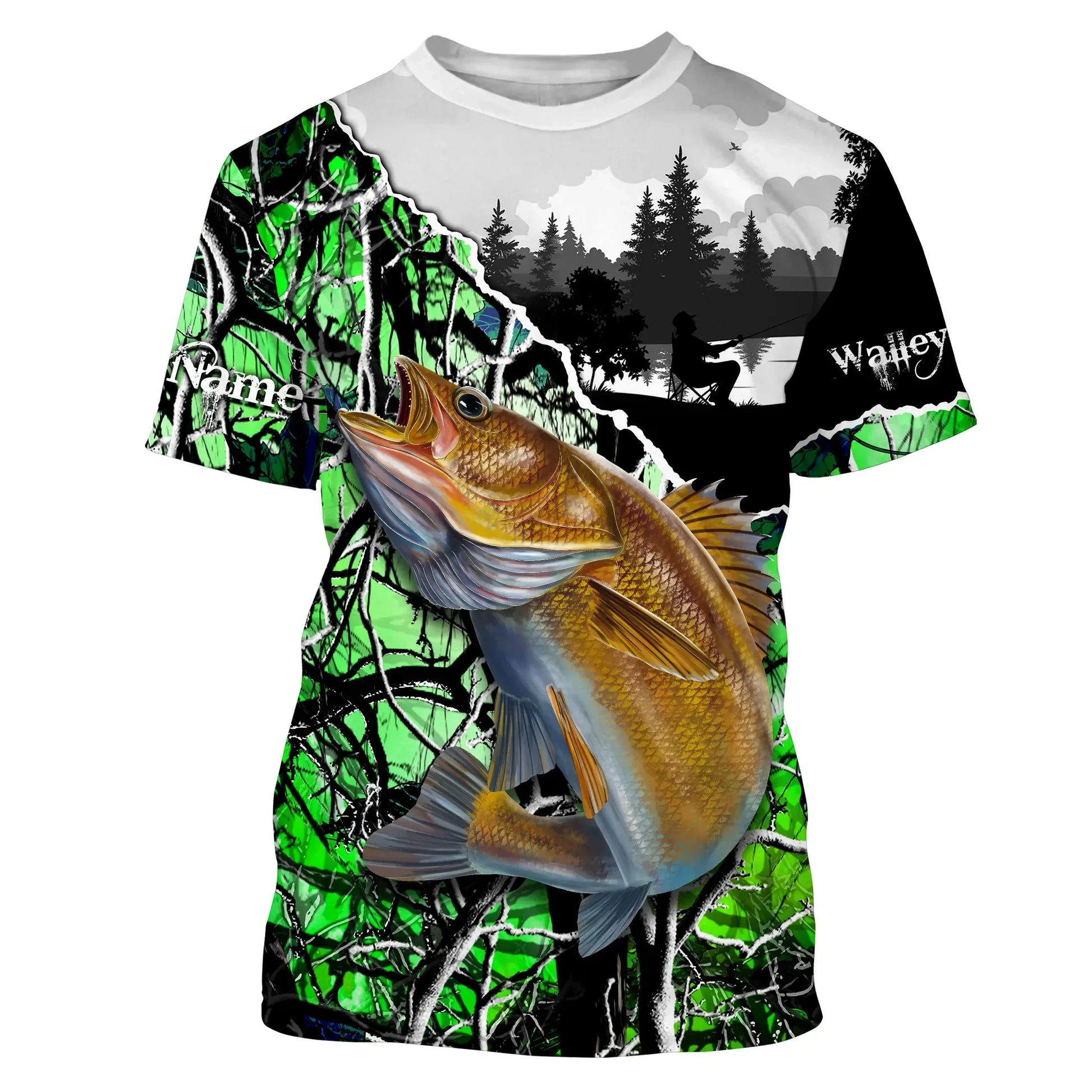 BlueJose Custom Walleye Fishing Green Camo Tournament Fishing Shirt