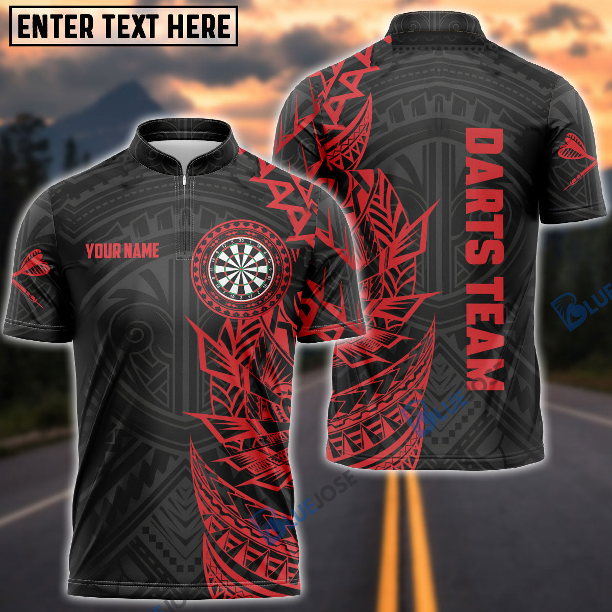 BlueJose Tribal Tattoo Red Black Custom Darts Shirts