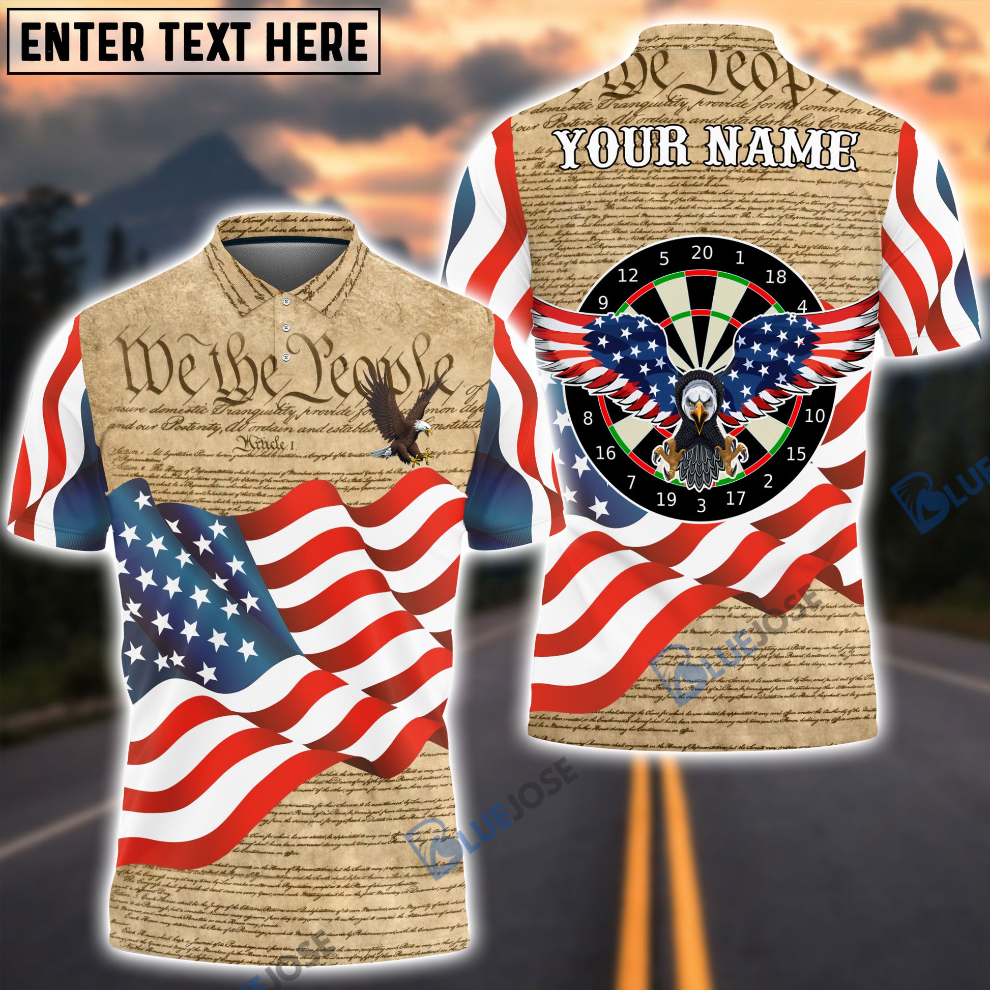 BlueJose Darts Eagle Waving Flag Custom Polo Shirts