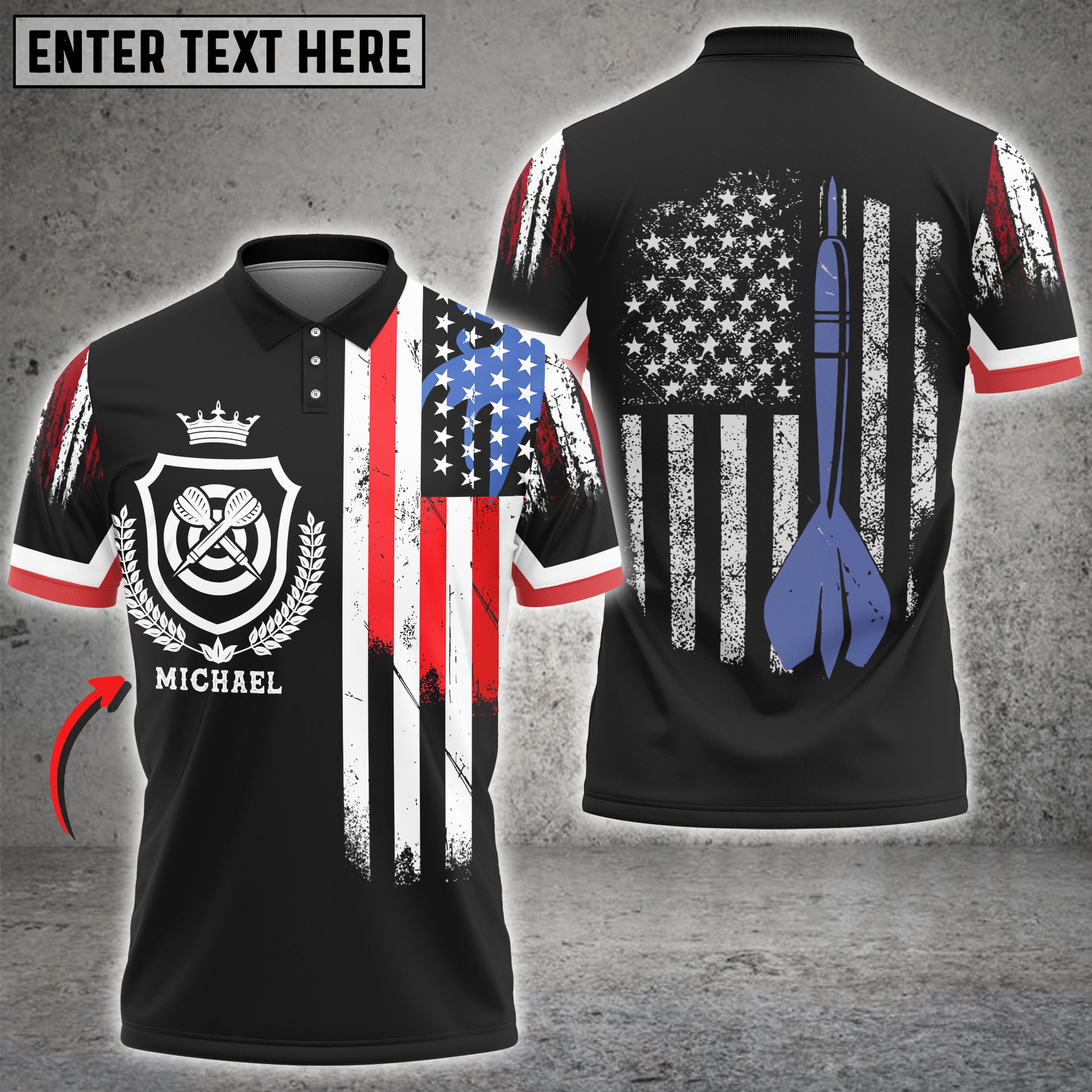 BlueJose Darts USA Flag Crown Emblem Custom Darts Shirts