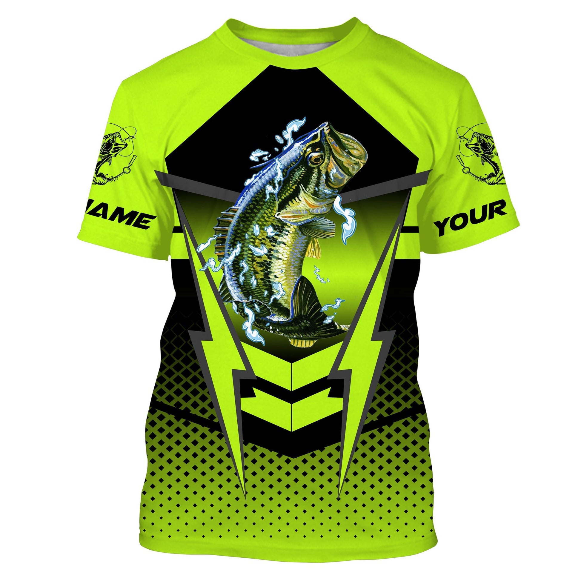 BlueJose Largemouth Bass Fishing Green Shirt Custom Name Fishing Shirt