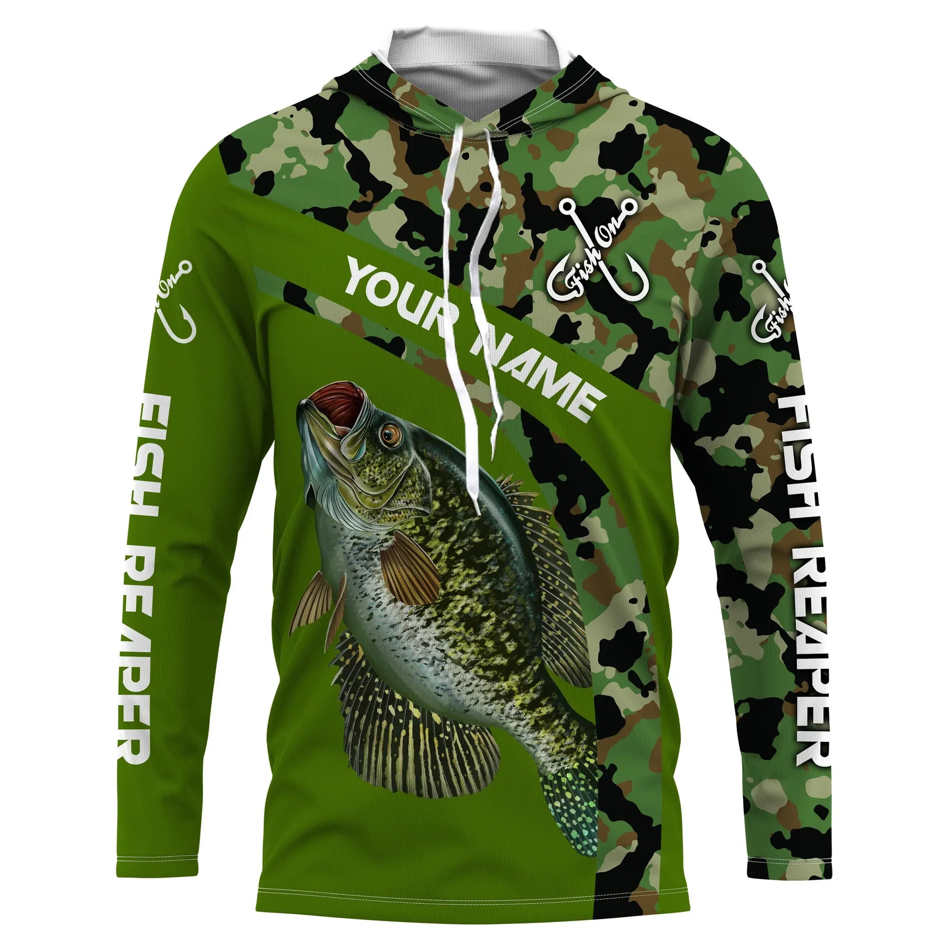 Bluejose Crappie Fishing Green Camo Custom Tournament Fishing Long Sleeves, Long Sleeves Hooded Shirt