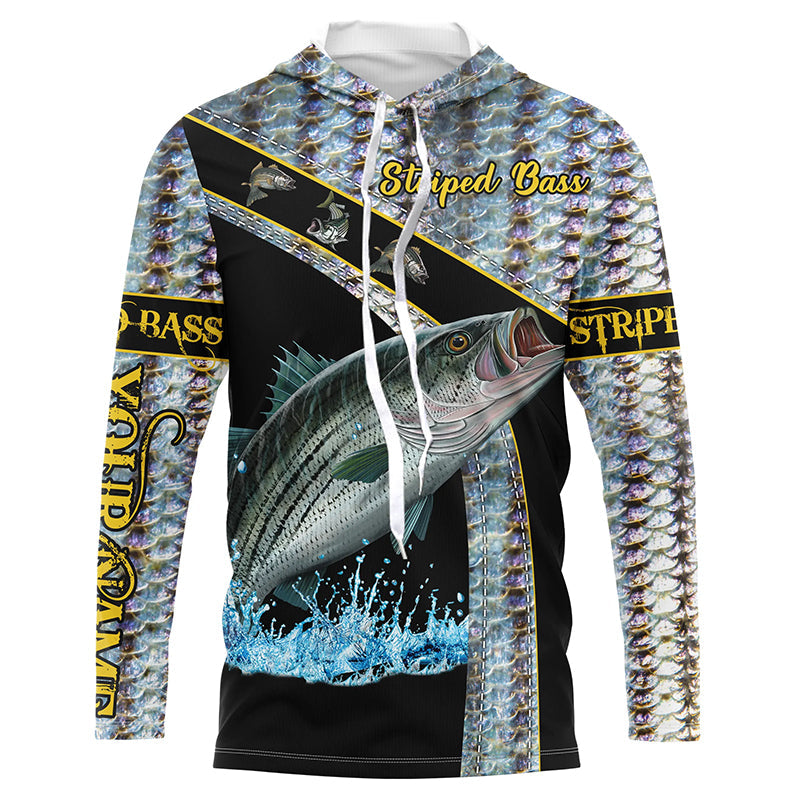 Bluejose Striped Bass Fishing Scales Custom Name Striped Bass Fishing Long Sleeve, Long Sleeve Hooded