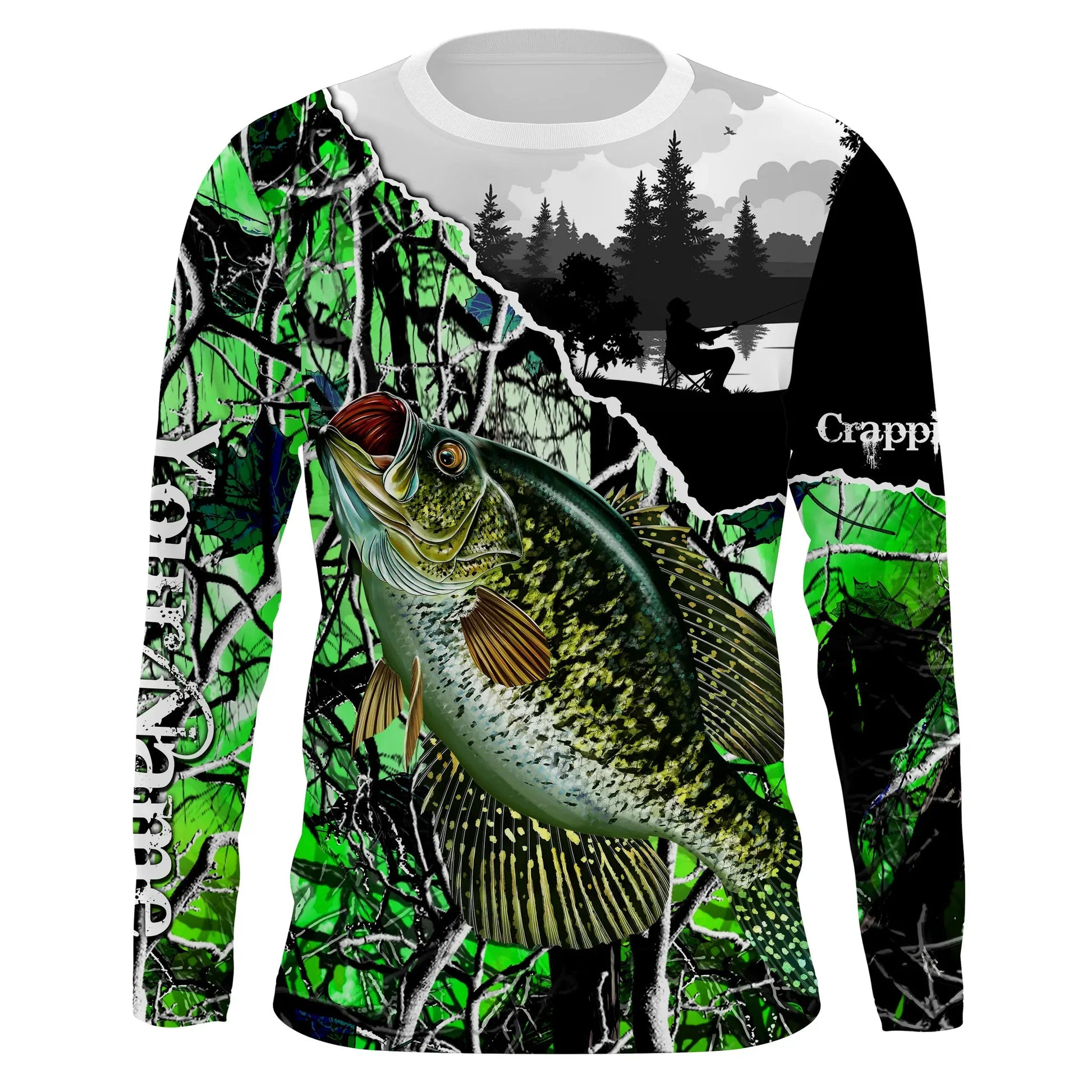 Bluejose Custom Crappie Fishing Green Camo Tournament Fishing Jerseys, Crappie
