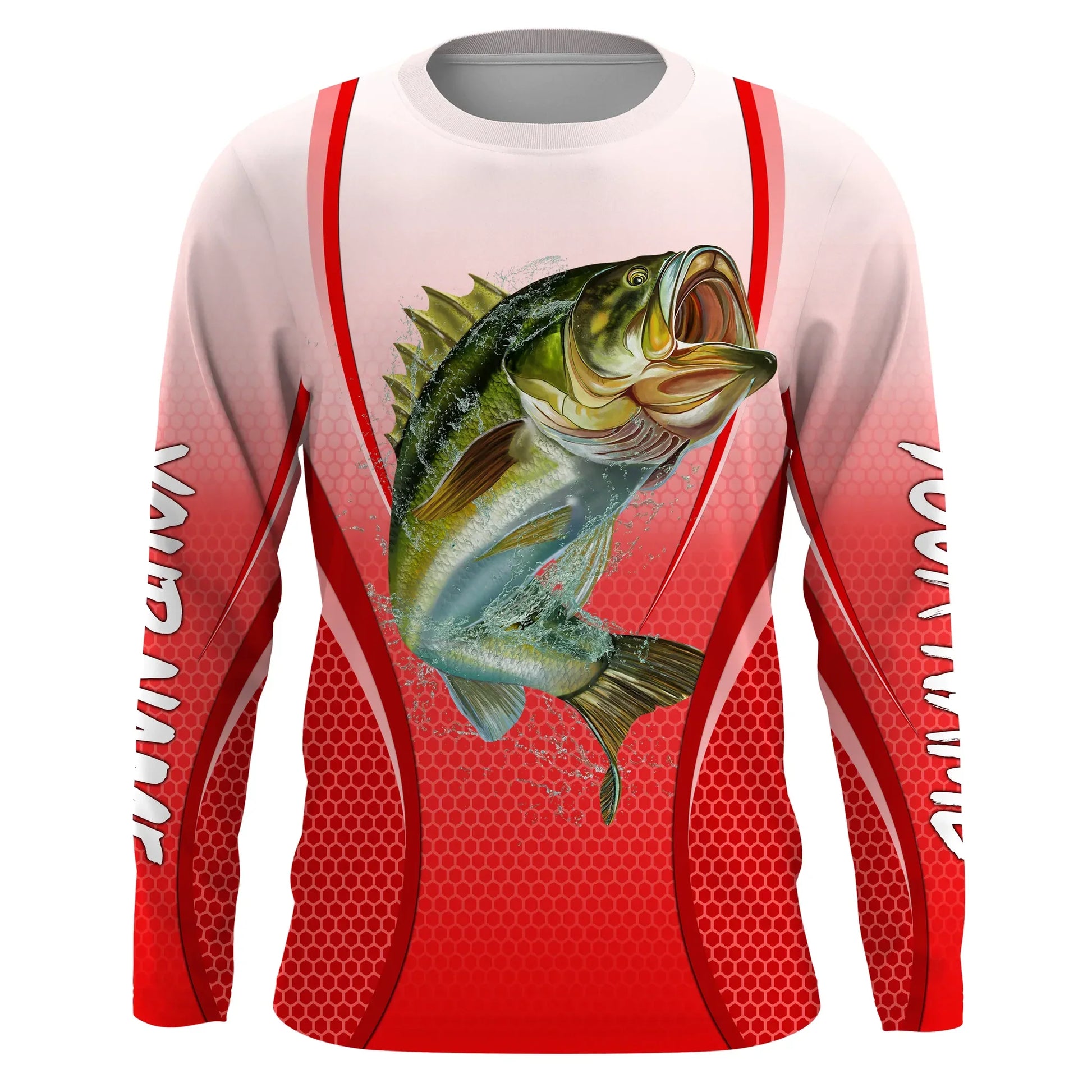 Bluejose Largemouth Bass Fishing Red Camo Bass Jersey Customize Name Bass Fishing Tournament Long Sleeve