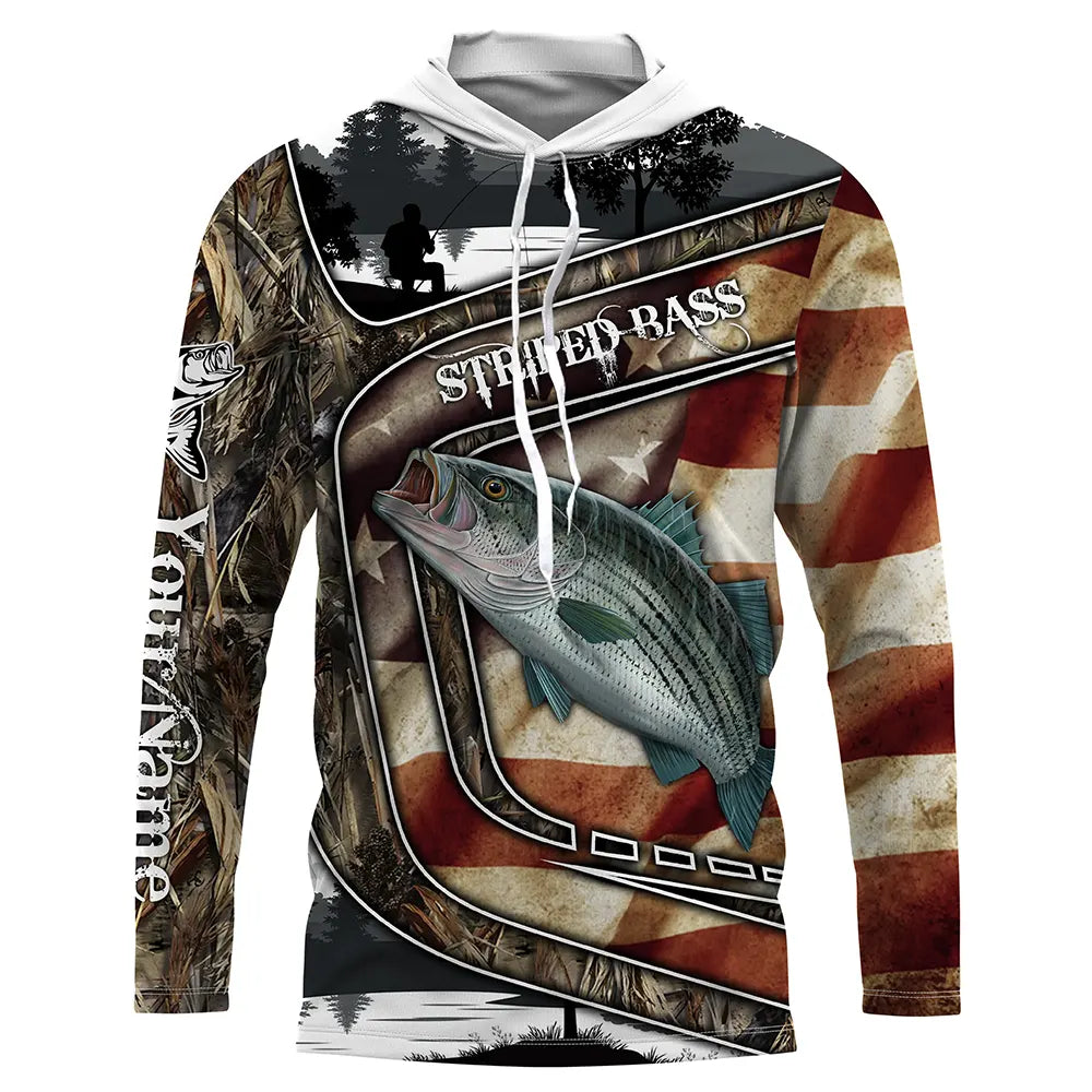 Bluejose American Flag Patriotic Striped Bass Fishing 3D Shirts