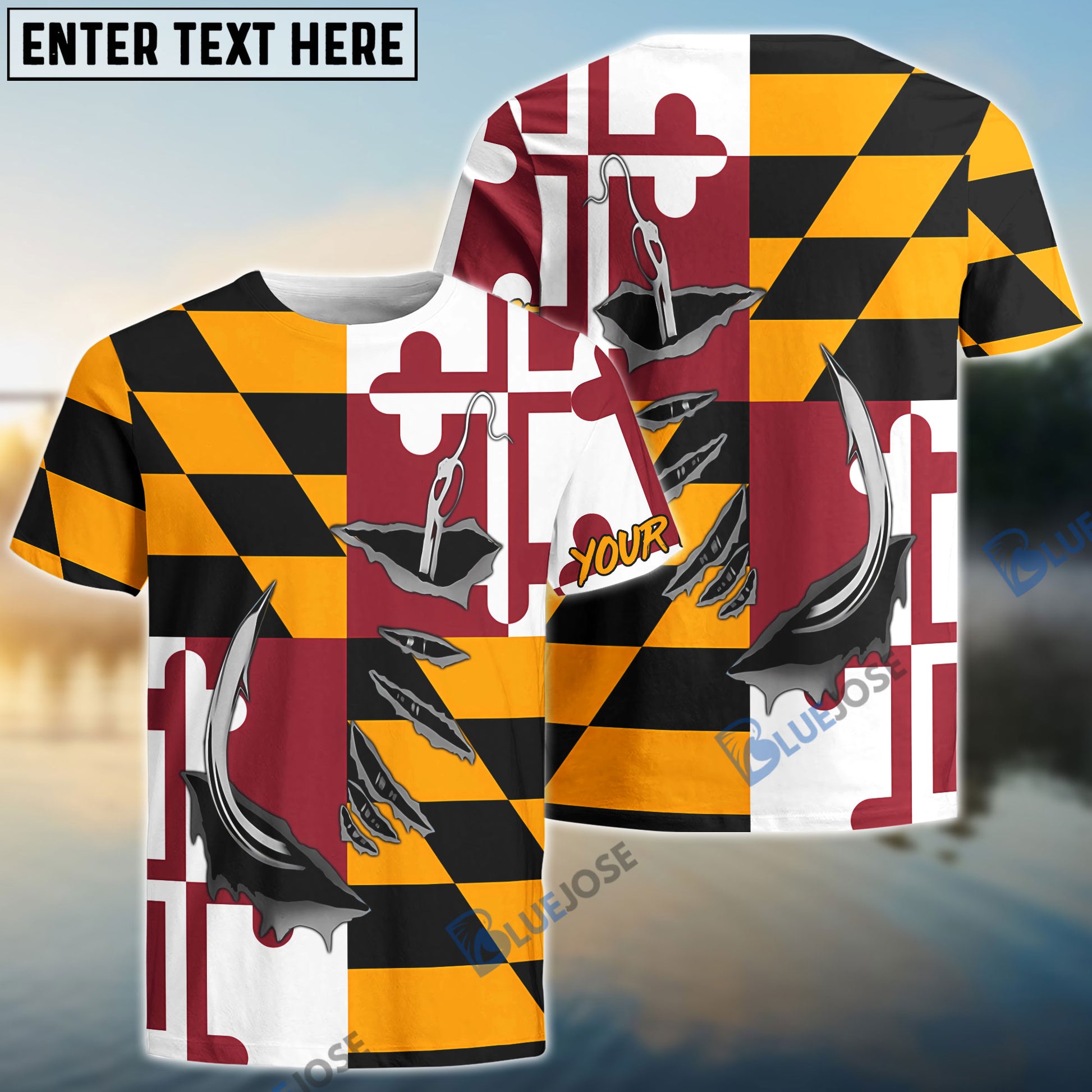 Bluejose Maryland Flag 3D Fish Hook Custom Long Sleeve Performance Fishing Shirts