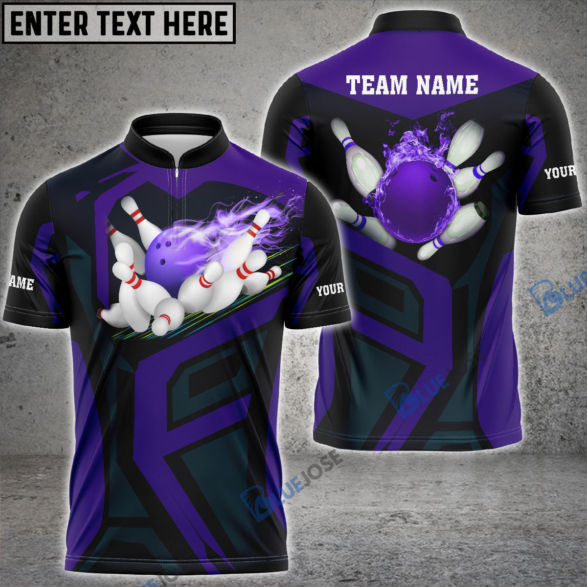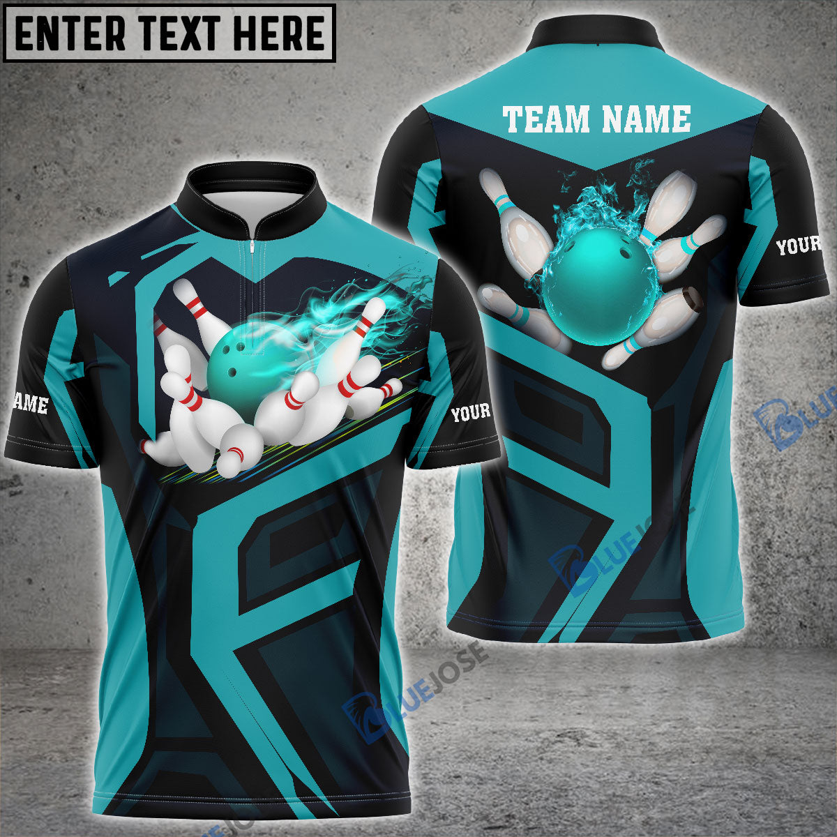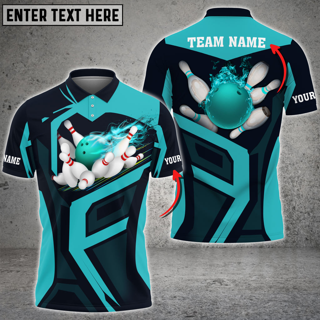 BlueJose Fire Bowling Ball And Pins Multicolor Customized Name 3D Polo Shirt