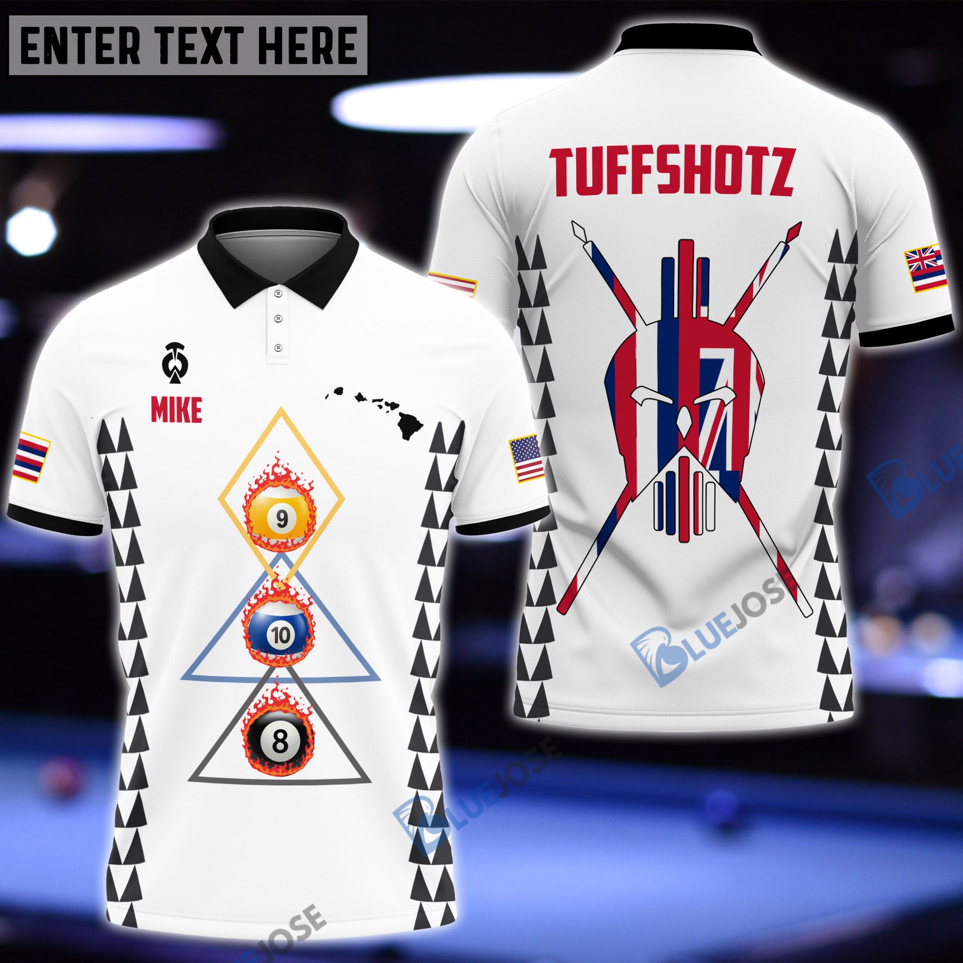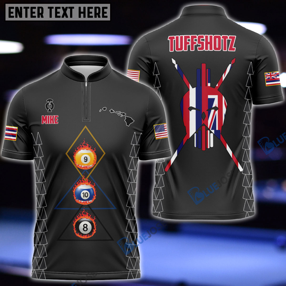 BlueJose Version 2 Billiards Hawaii & USA Flag Personalized Name, Team Name Zipper Polo Shirt