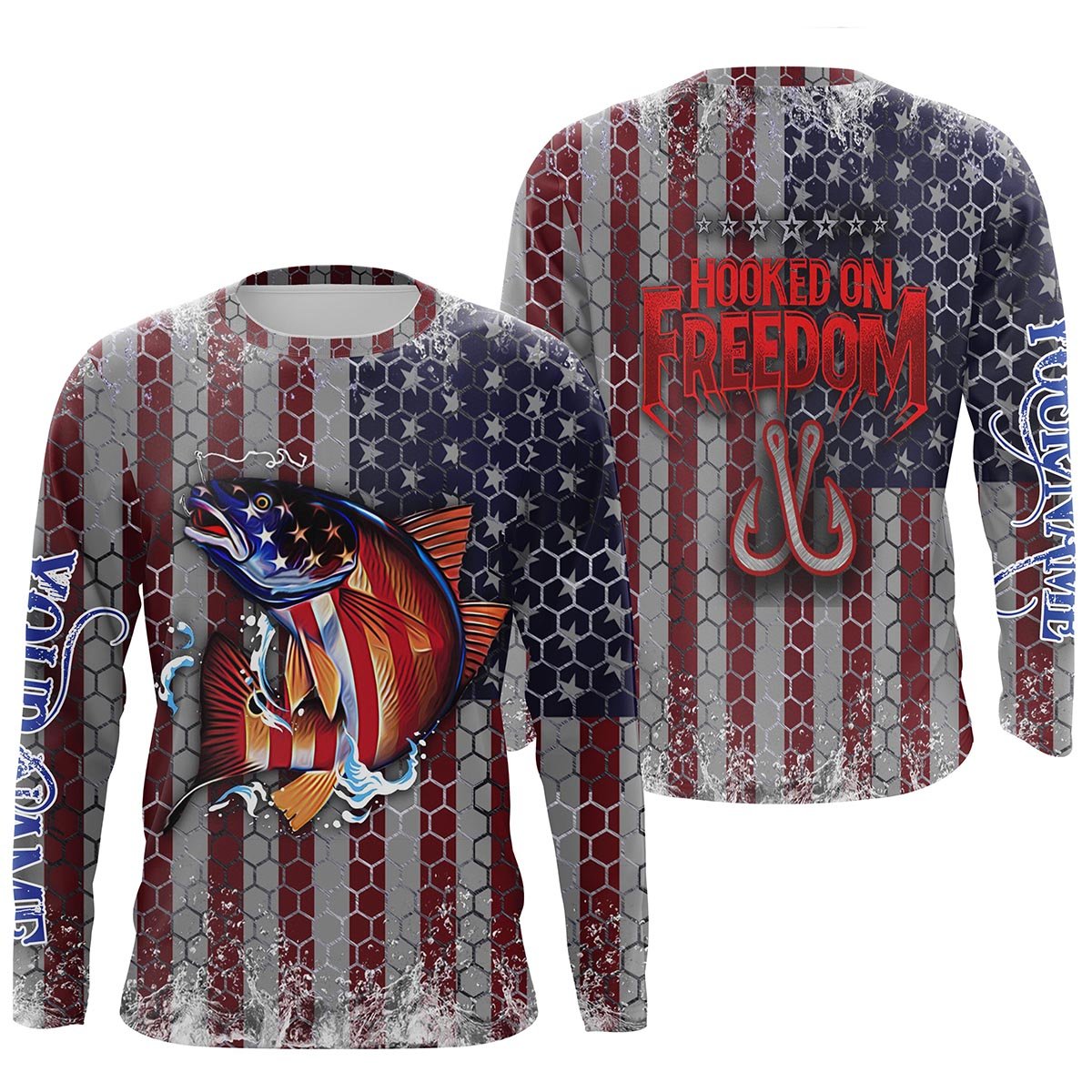 Bluejose Redfish Puppy Drum Fishing American Flag Hooked On Freedom Customize Name Shirts
