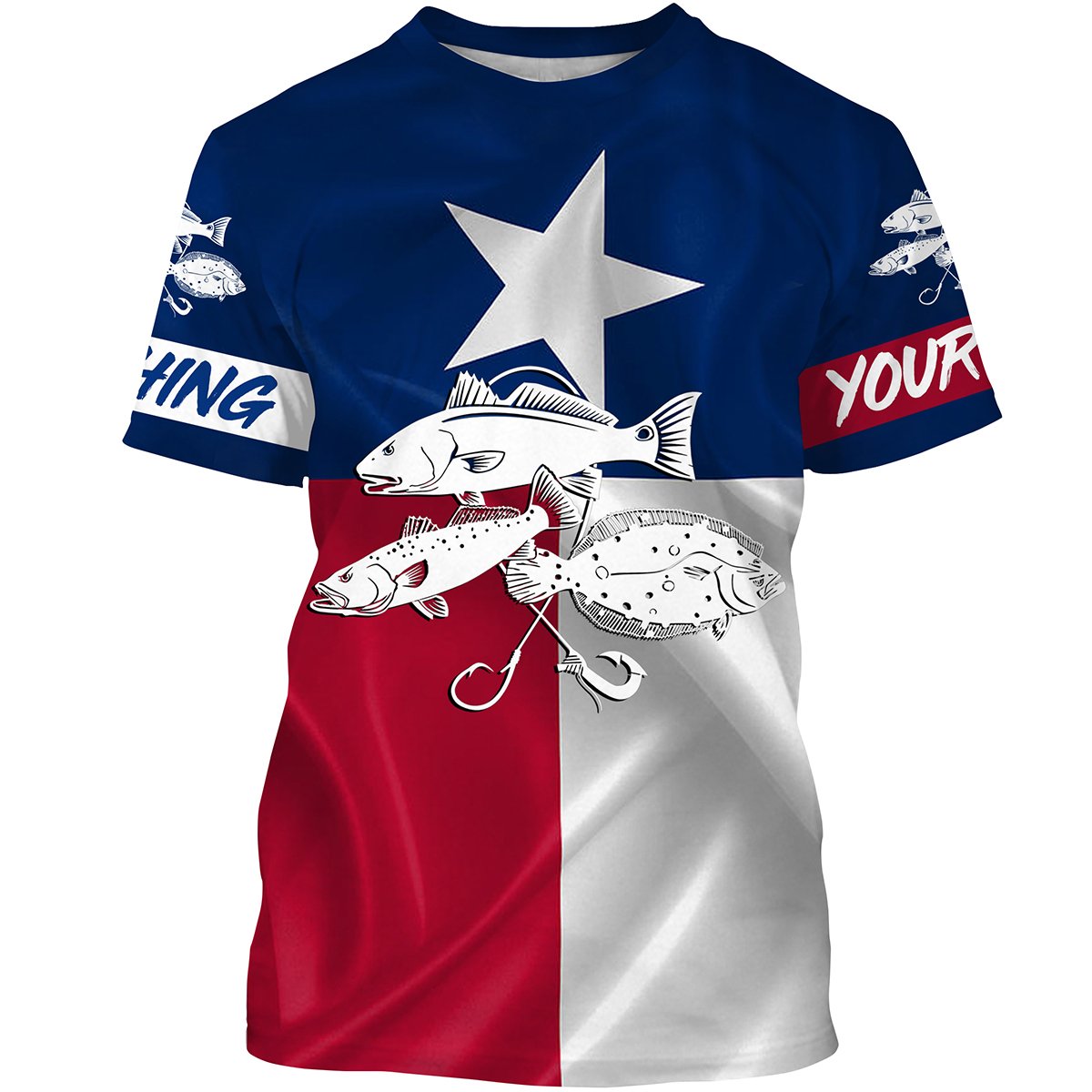 Bluejose Redfish Trout Flounder Tattoo Texas Slam Fishing Texas Flag 3D All Over Print Shirts Saltwater Personalized
