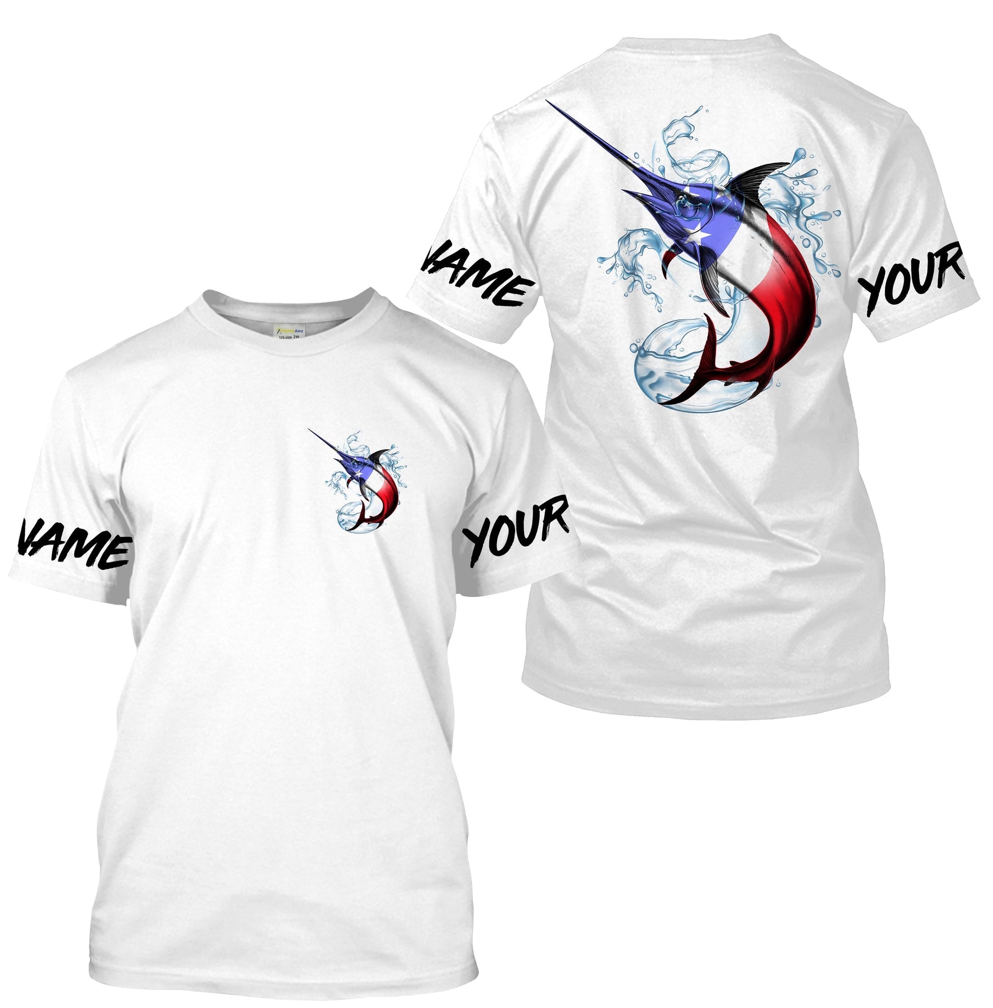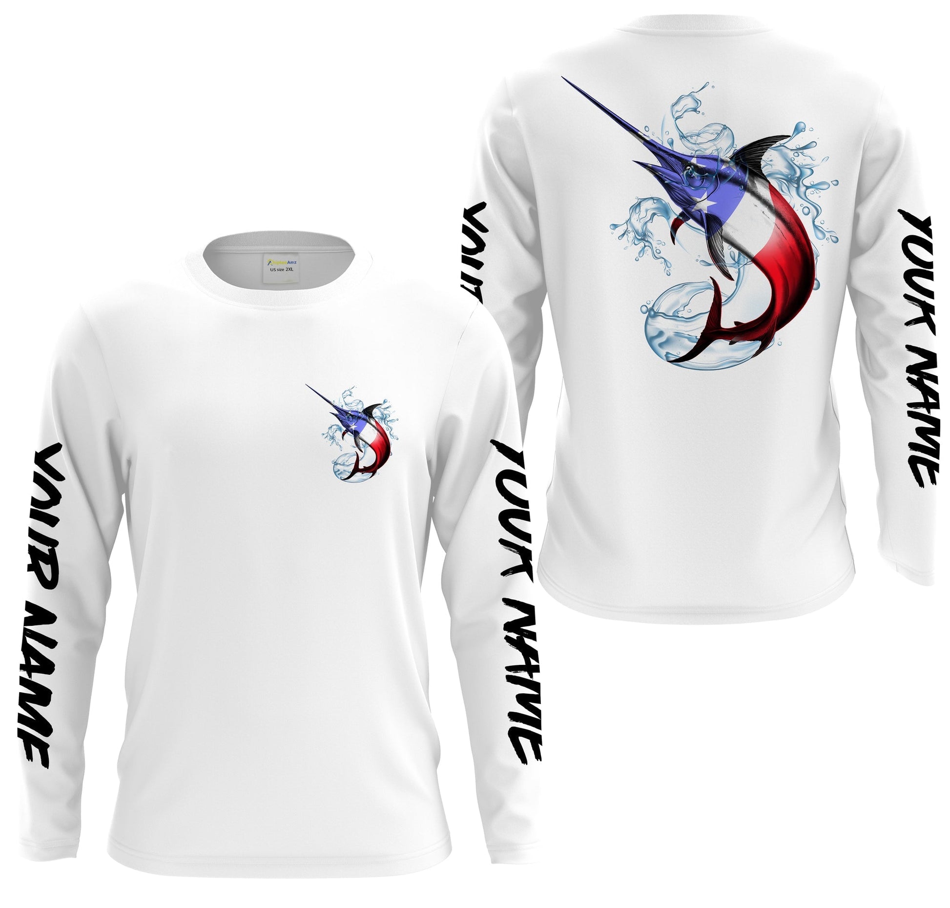 Bluejose Swordfish Fishing American Flag Custom Long Sleeve Performance Fishing Shirts, Patriotic