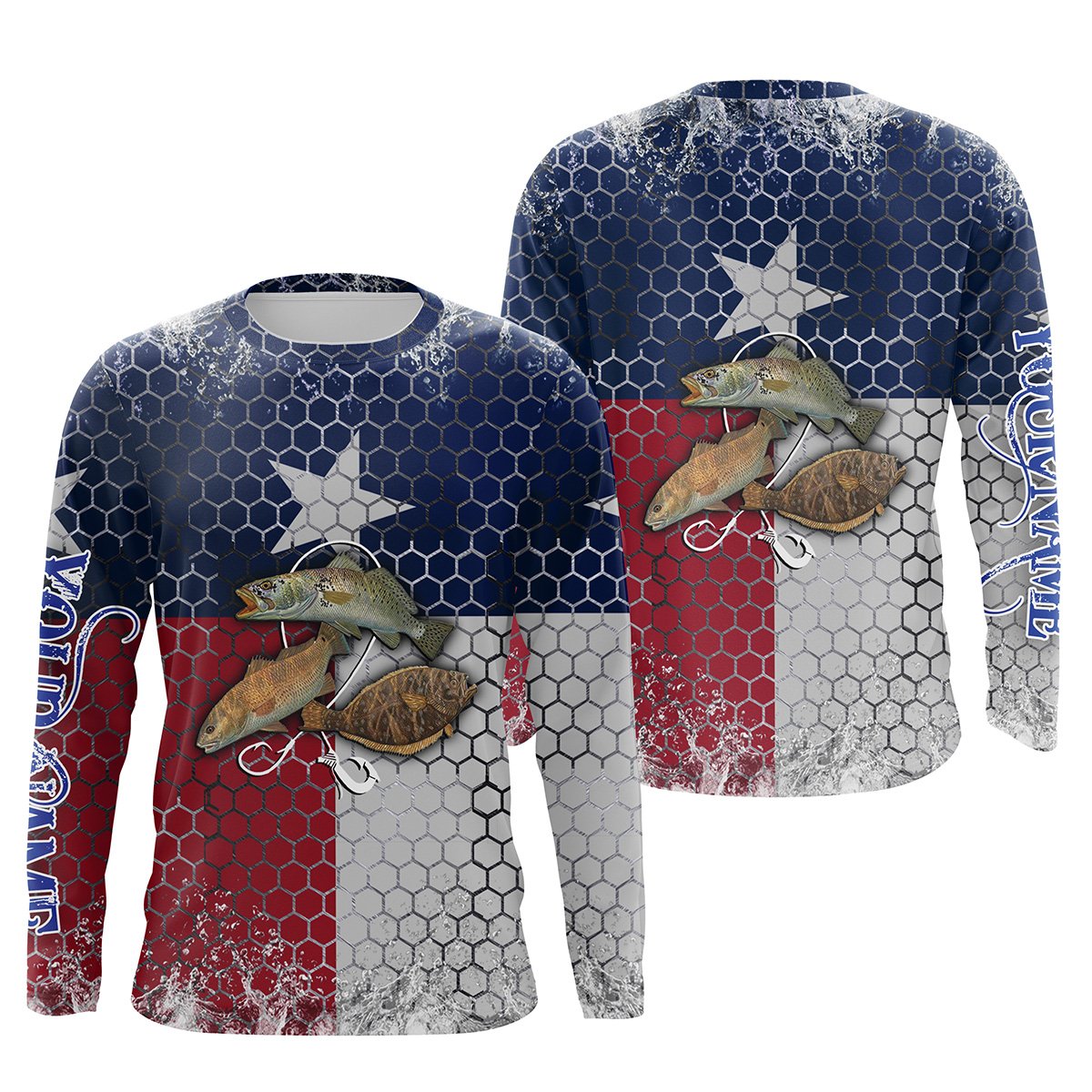 Bluejose Slam Fishing Texas Flag Hooked On Freedom Customize Name Shirts