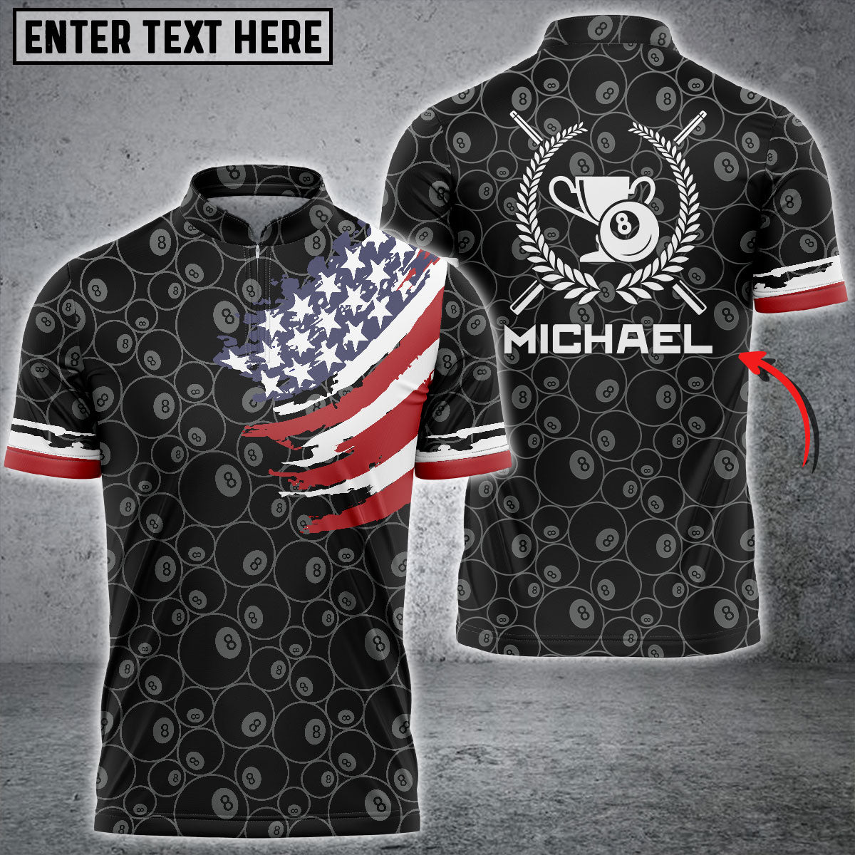 BlueJose Ball 8 Pattern Trophy Emblem Billiard Custom Name Zipper Polo Shirt