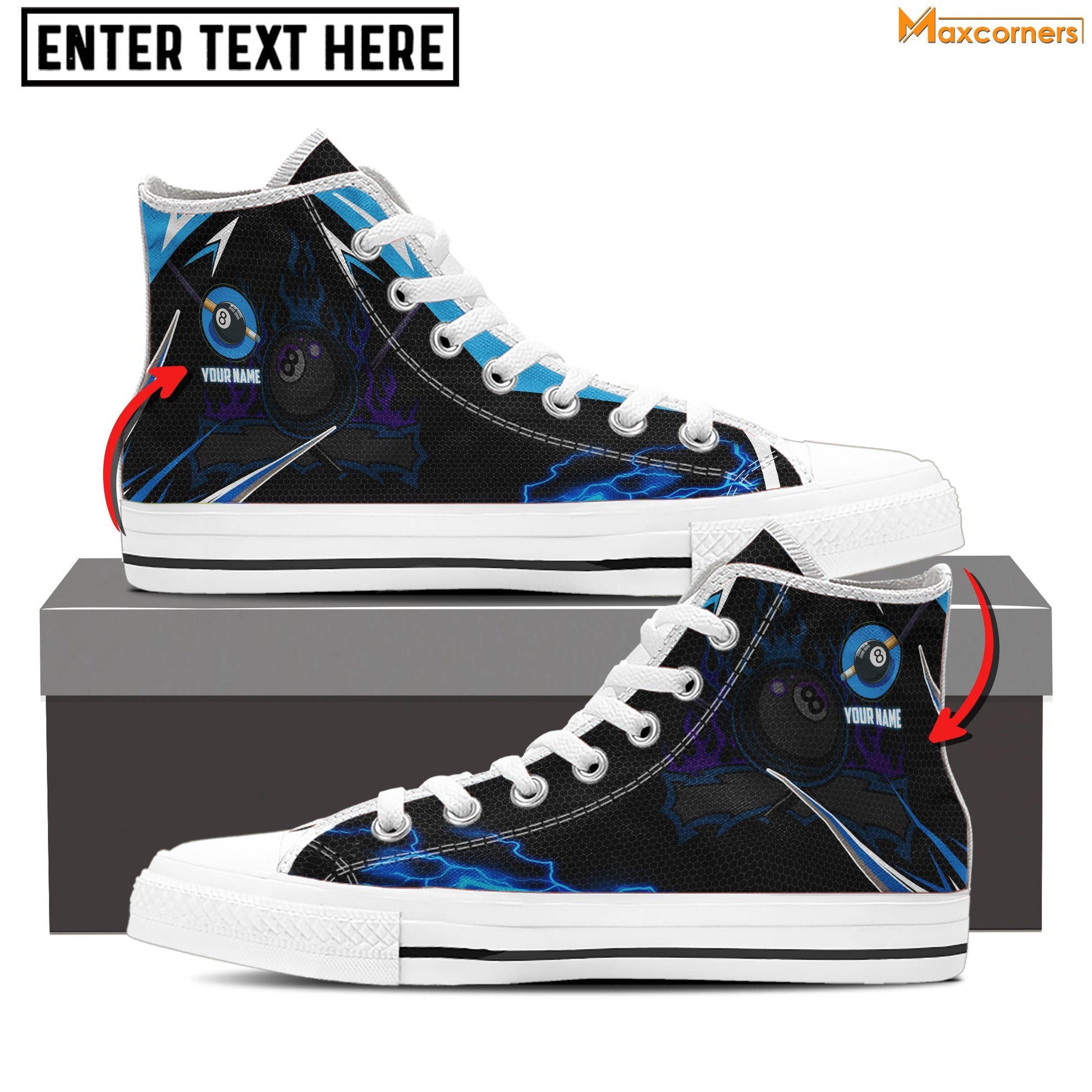 BlueJose Billiard Blue Fire Personalized Name High Top Shoes