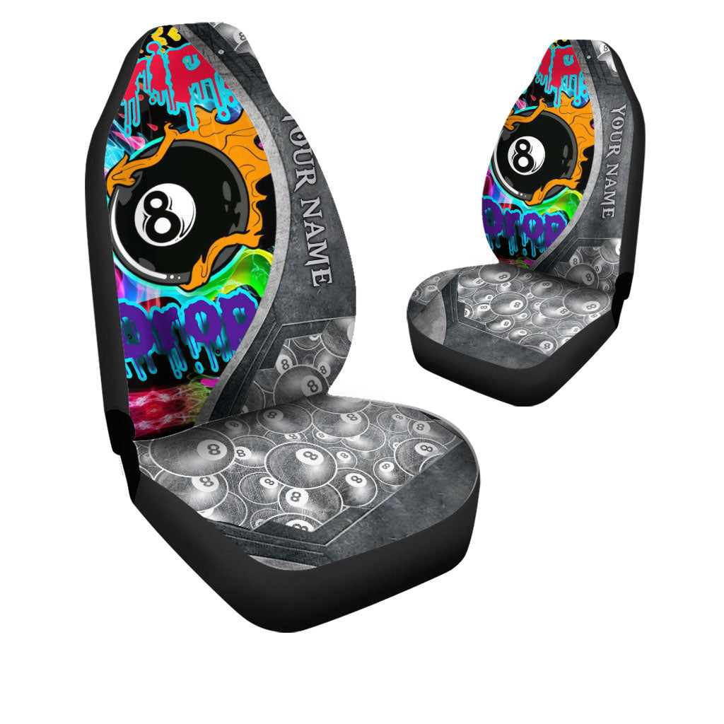 BlueJose Billiard Multicolor Paint Personalized Name Car Seat Covers Universal Fit (2Pcs)