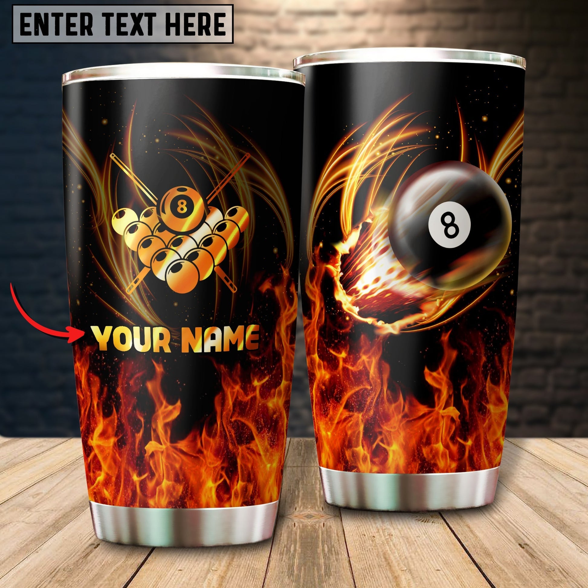 BlueJose Billiards Flaming Eight Ball Personalized Name Tumbler