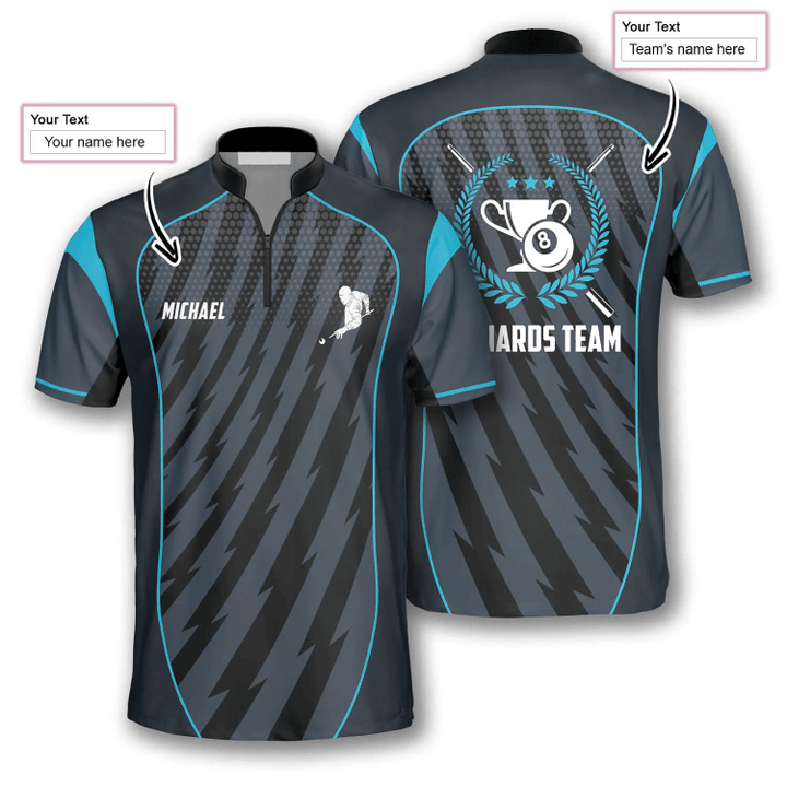 BlueJose Blue Grey Style Billiard Custom Name Zipper Polo Shirt