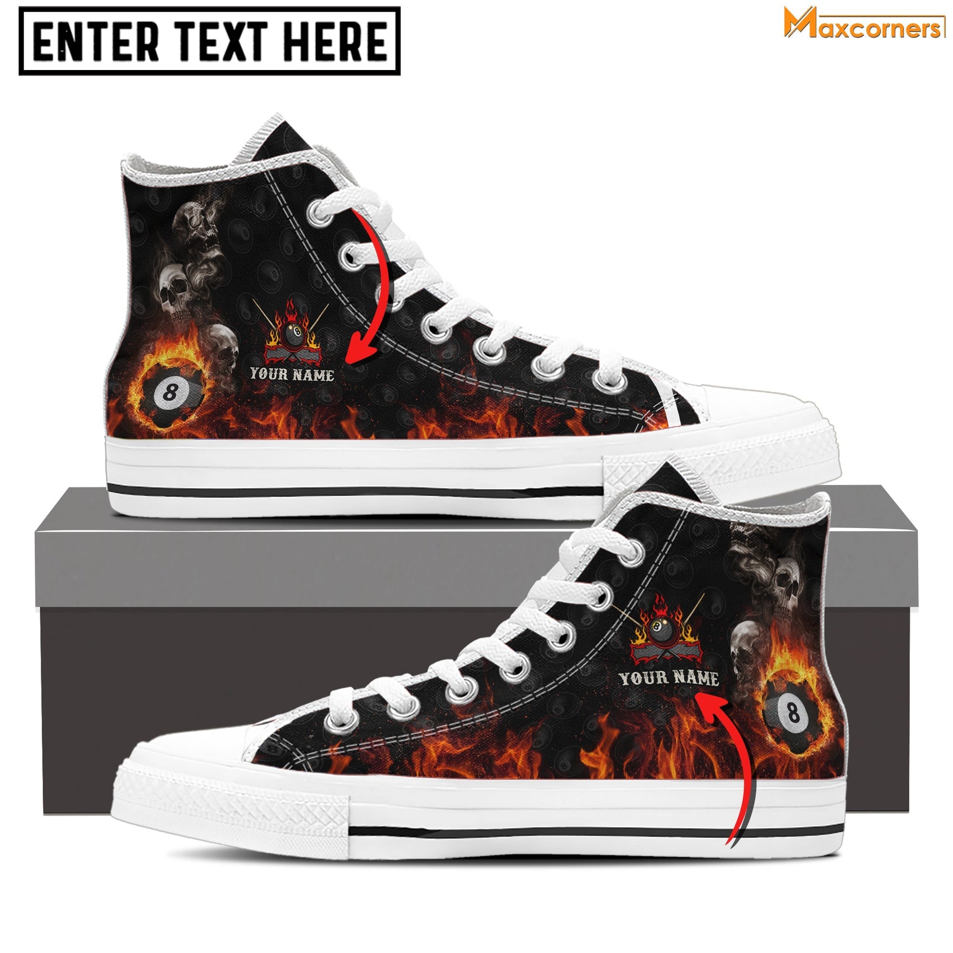 BlueJose Skull On Fire Billiard Personalized Name High Top Shoes